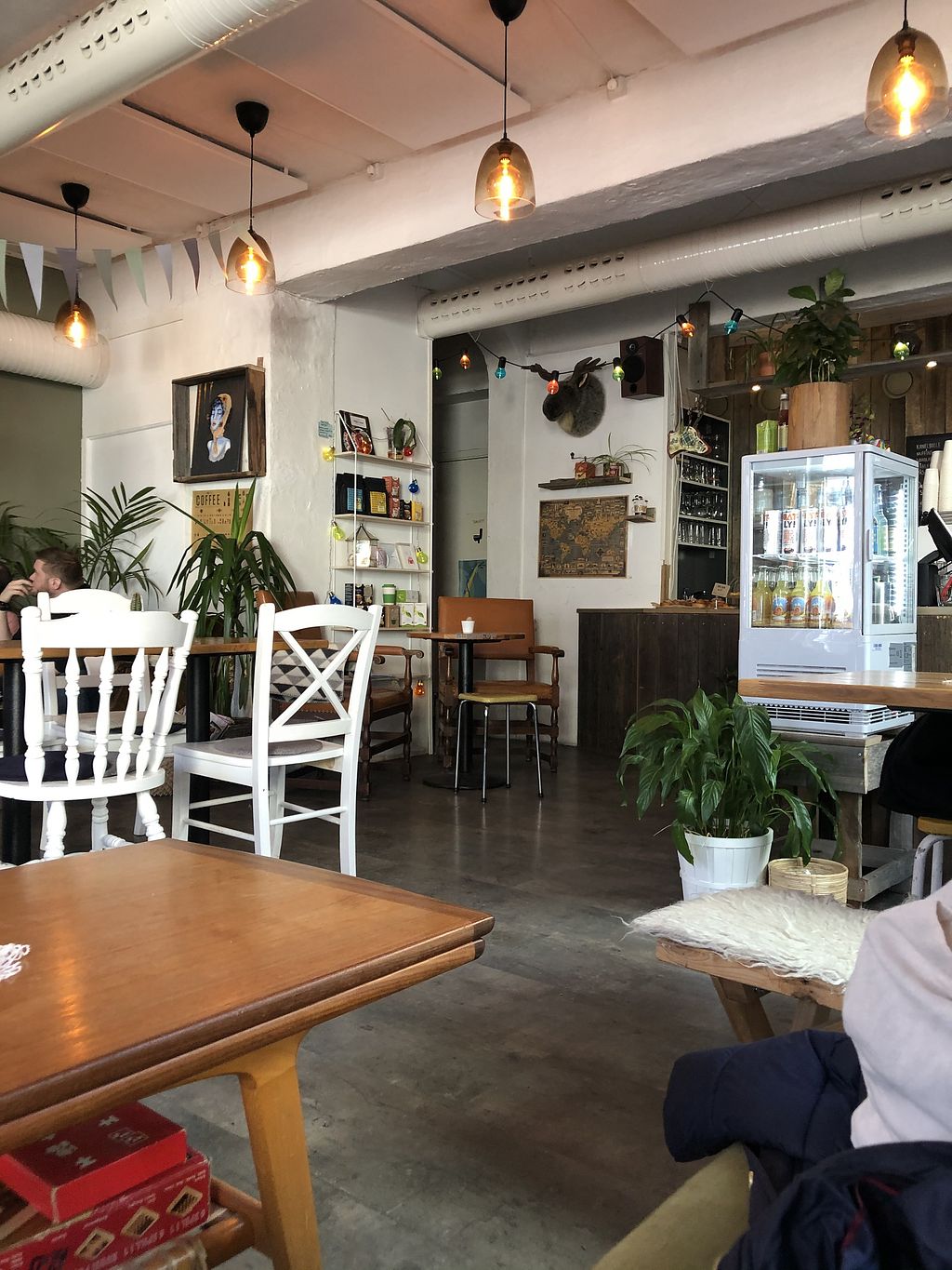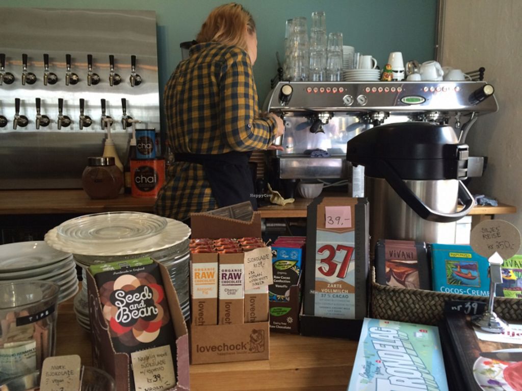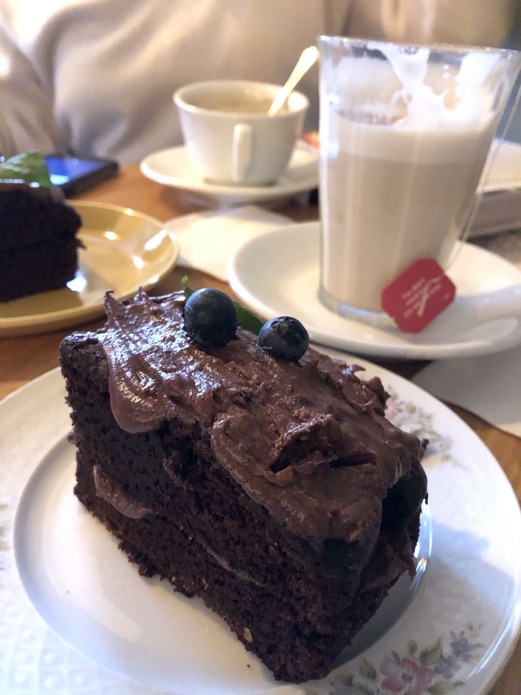 Lots of vegan cakes and baked goods, fresh specialty coffee, chocolate…