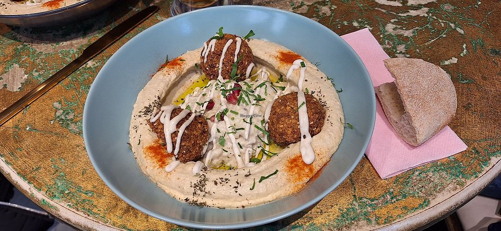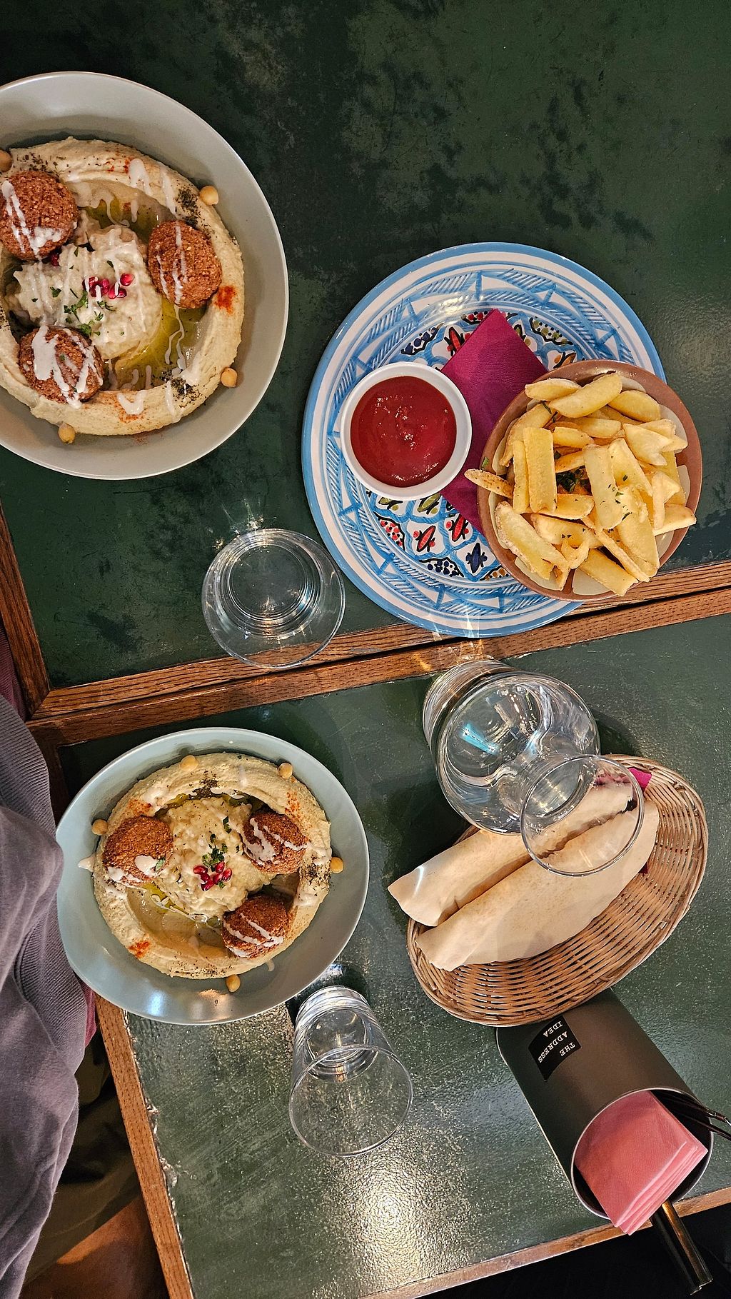 We had some hummus and falafel and also shakshuka. We liked the food and atmosphere but they could definitely declare their vegan options more clearly.