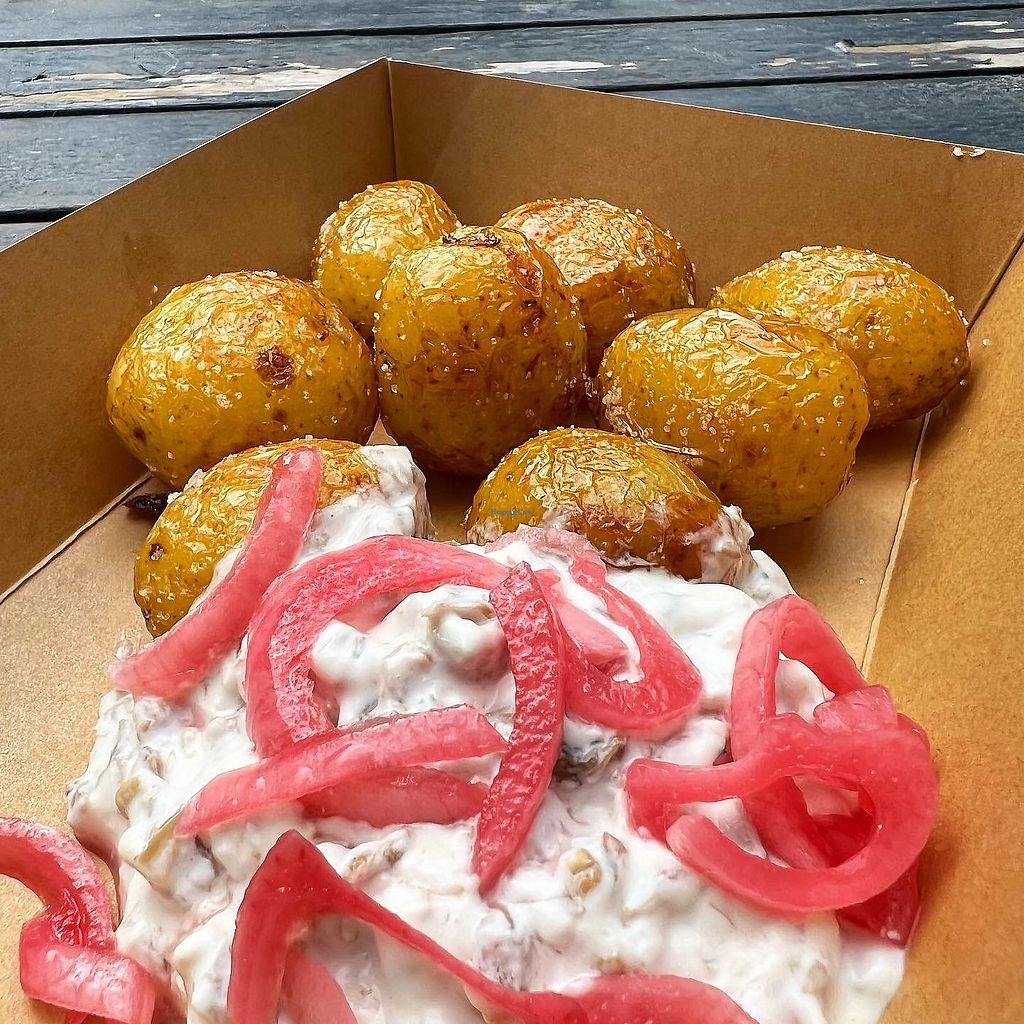 Cute kiosk has new tenants. Kahvila Rakastan has yummy new potatoes with plantbased toppings. I had ”metsä” or ”forest” with lovely creamy forest mushroom & red onion topping. They also have fresh donuts and they serve wine too.