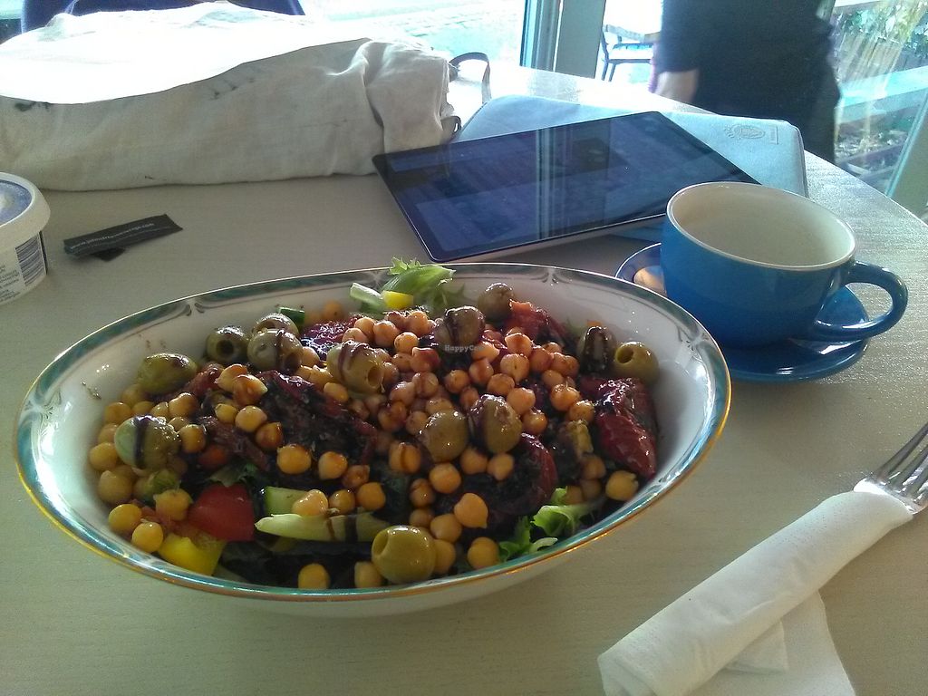 The bean, olives, chickpea salad was very nice, it was a variation to a vegetarian option. The Vegan burger I had on another visit is of the popular like meat type that I would not have again, but was very nicely made and served.