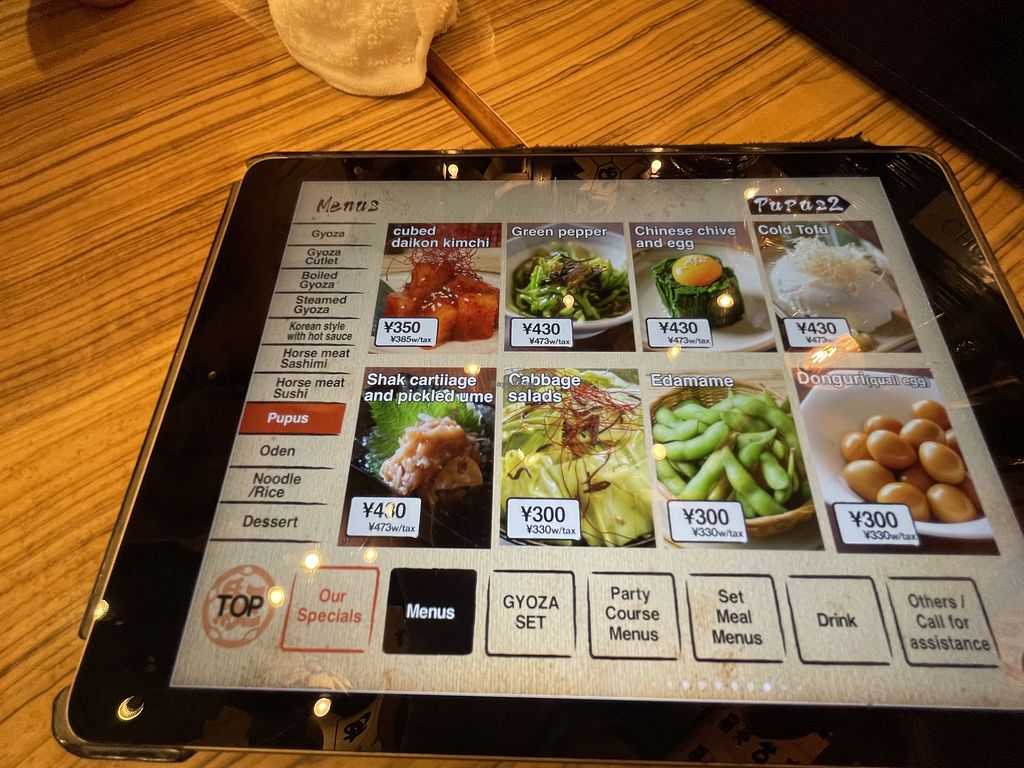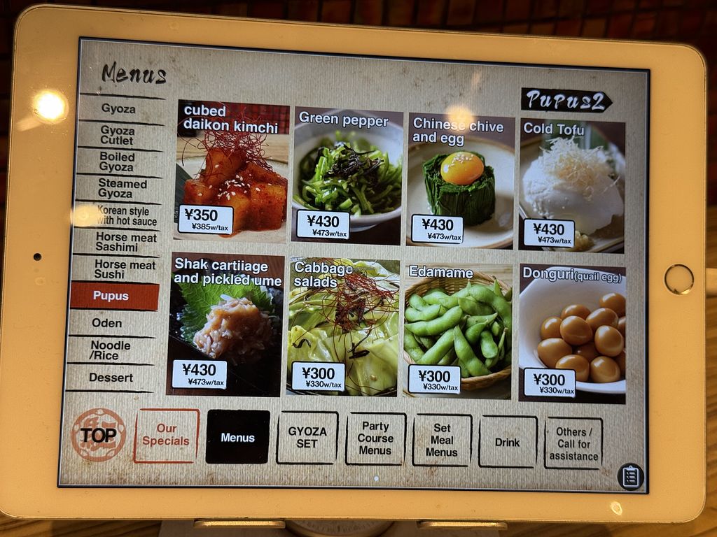 My friends and I had the vegan course menu (booked in advance) with the all-you-can-drink option. The different gyoza were really good! We also loved the salads, the cold tofu and the noodles. We even had ice cream/sorbet for dessert. It was a really great experience, I would definitely go back!
