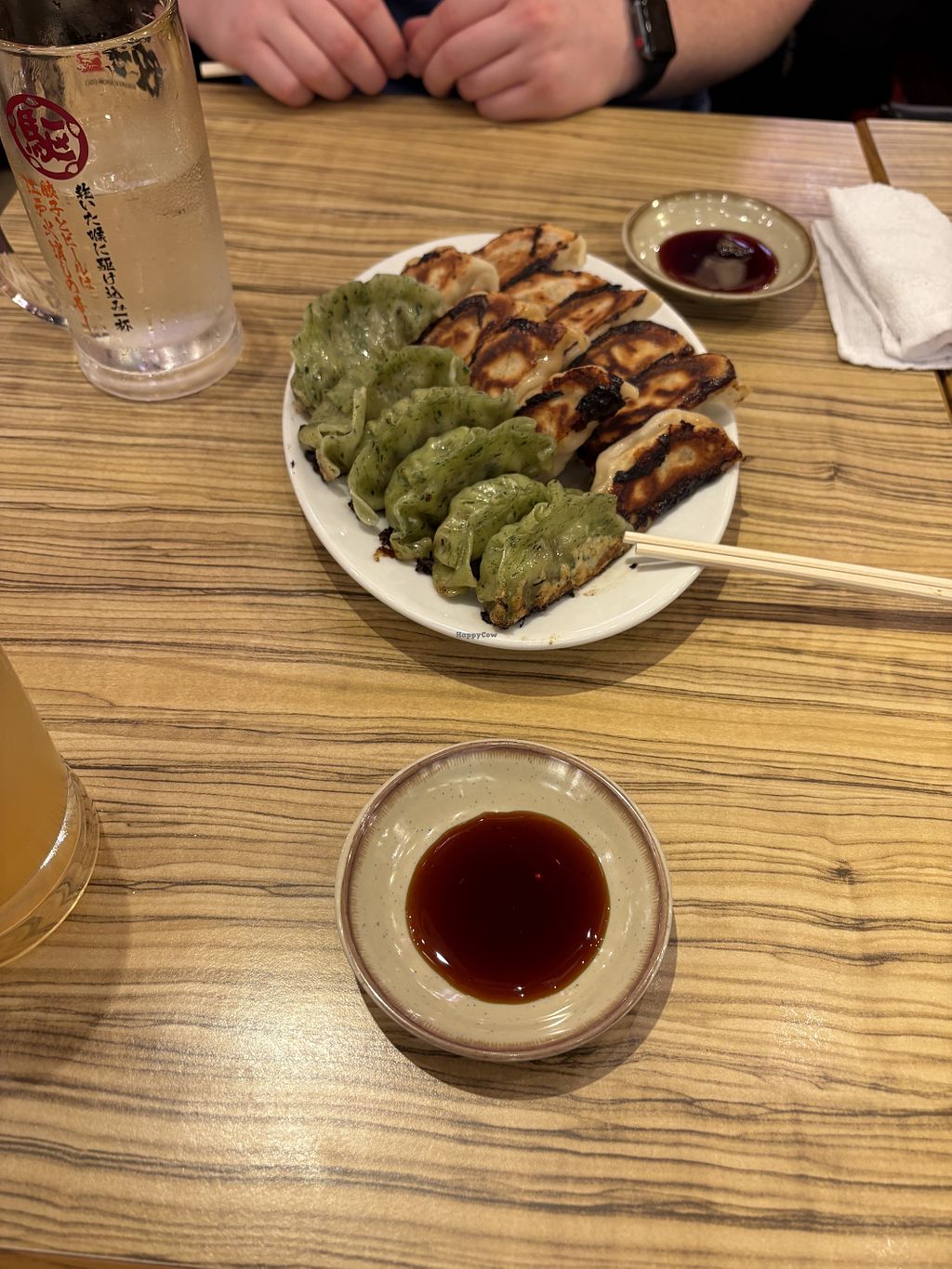 I tried multiple vegan gyoza and loved them all. The fried gyoza was my favorite! The atmosphere is really unique since it’s based on an old Japanese fire station. The place was super busy on a Wednesday night. I would recommend making a reservation on tablelog to make sure you can get a seat especially at peak times. Also be aware that there is a minimum of 1 drink per person (non-alcohol options available)