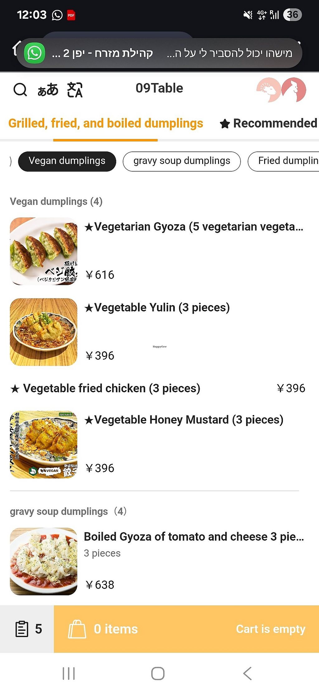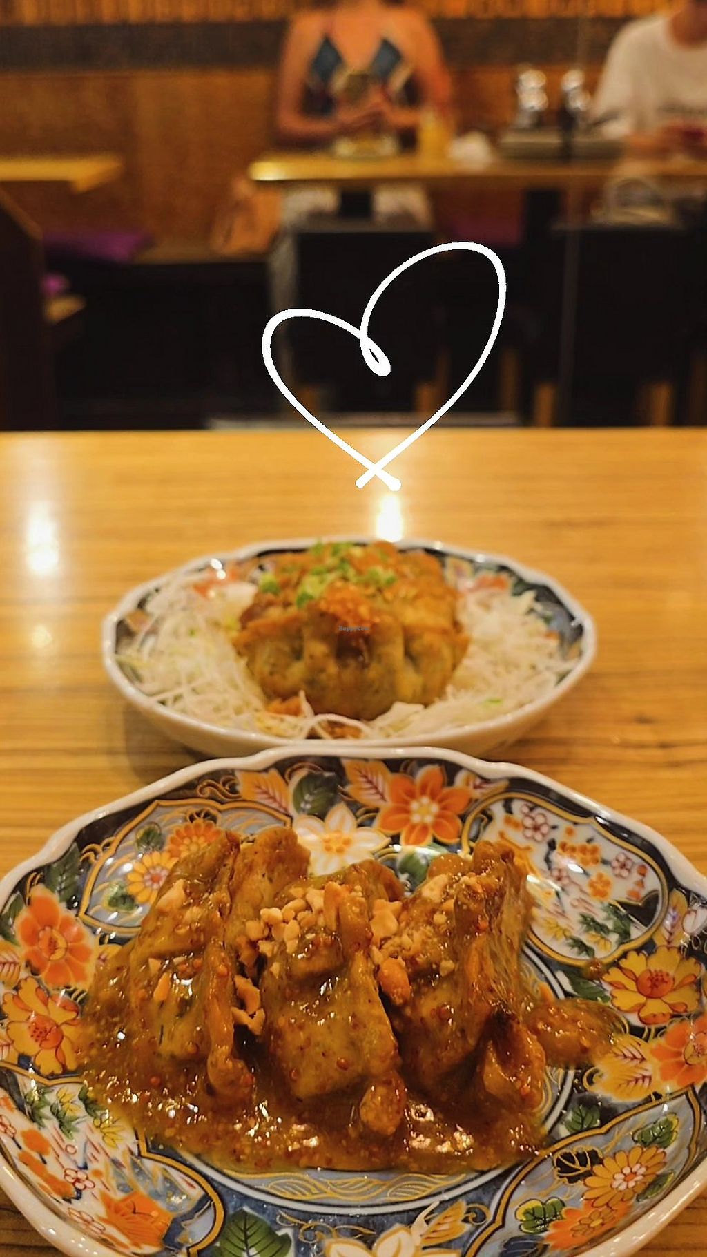Went in the early afternoon and we were all alone, looking through the menu they have 2 gyoza clearly labeled vegan and 2 others labeled "vegetable", we were unsure if vegetable meant vegetarian so decided not to risk it. The ones we ordered tho were the vegan fried gyoza and the vegan gyoza set which came with bamboo shoots, soup, and rice.