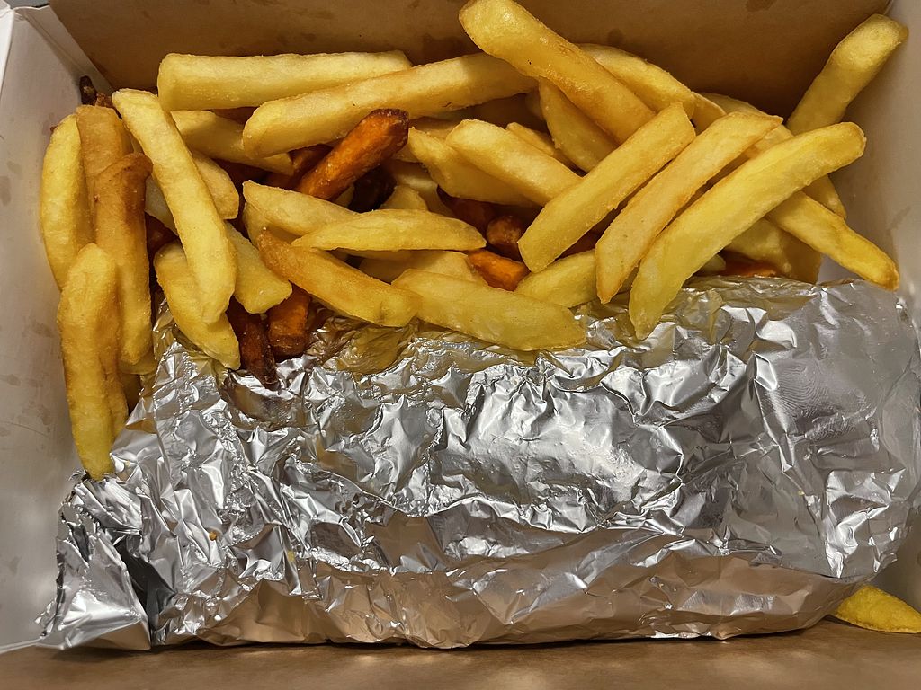 Papas y boniato con greek gyro