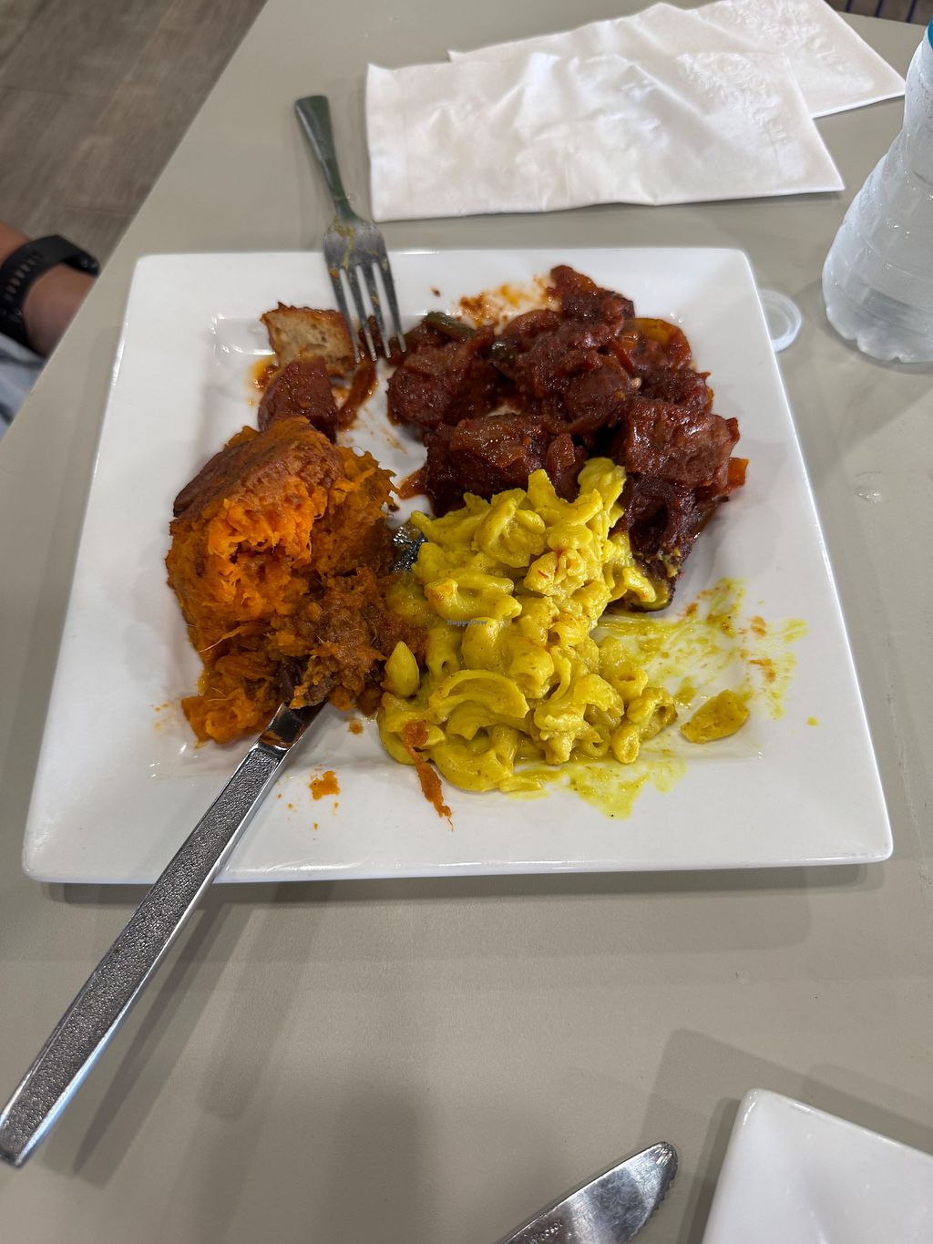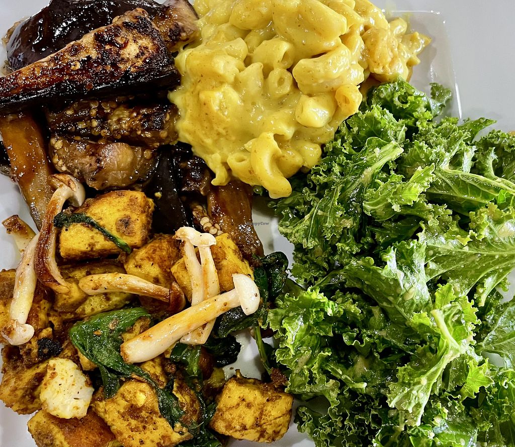 BBQ Seitan, Mac and cheese , sweet potato casserole. Great vegan food …
