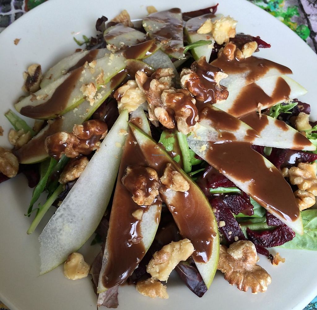 As I was aimlessly driving around the Lawrenceville area of Pittsburgh, Happy Cow led me to a hidden little neighborhood restaurant called Kaleidoscope Cafe. It was just a few blocks from Children's Hospital. I was pleasantly surprised. Although they do not have vegan items on the menu, they will adjust their selections to provide you with a delicious dish. The chef personally adjusted my pasta dish to make it vegan and I have to say that it was truly delicious, probably one of the best tasting pasta dish that I have eaten. The salad was also beautifully done. Not a fancy place but had very personal service and a great lunch.