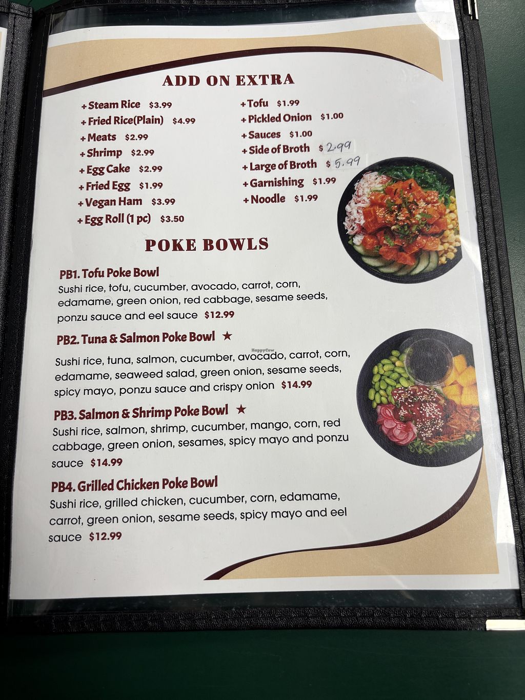 Not much in this area for vegan options, but this place has a separate vegan menu and other options including poke bowls. Tofu and vegan ham offered for proteins. Ample parking!