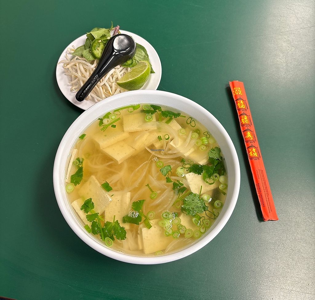 Very tasty tofu spring rolls, bahn mi and vegetarian pho.