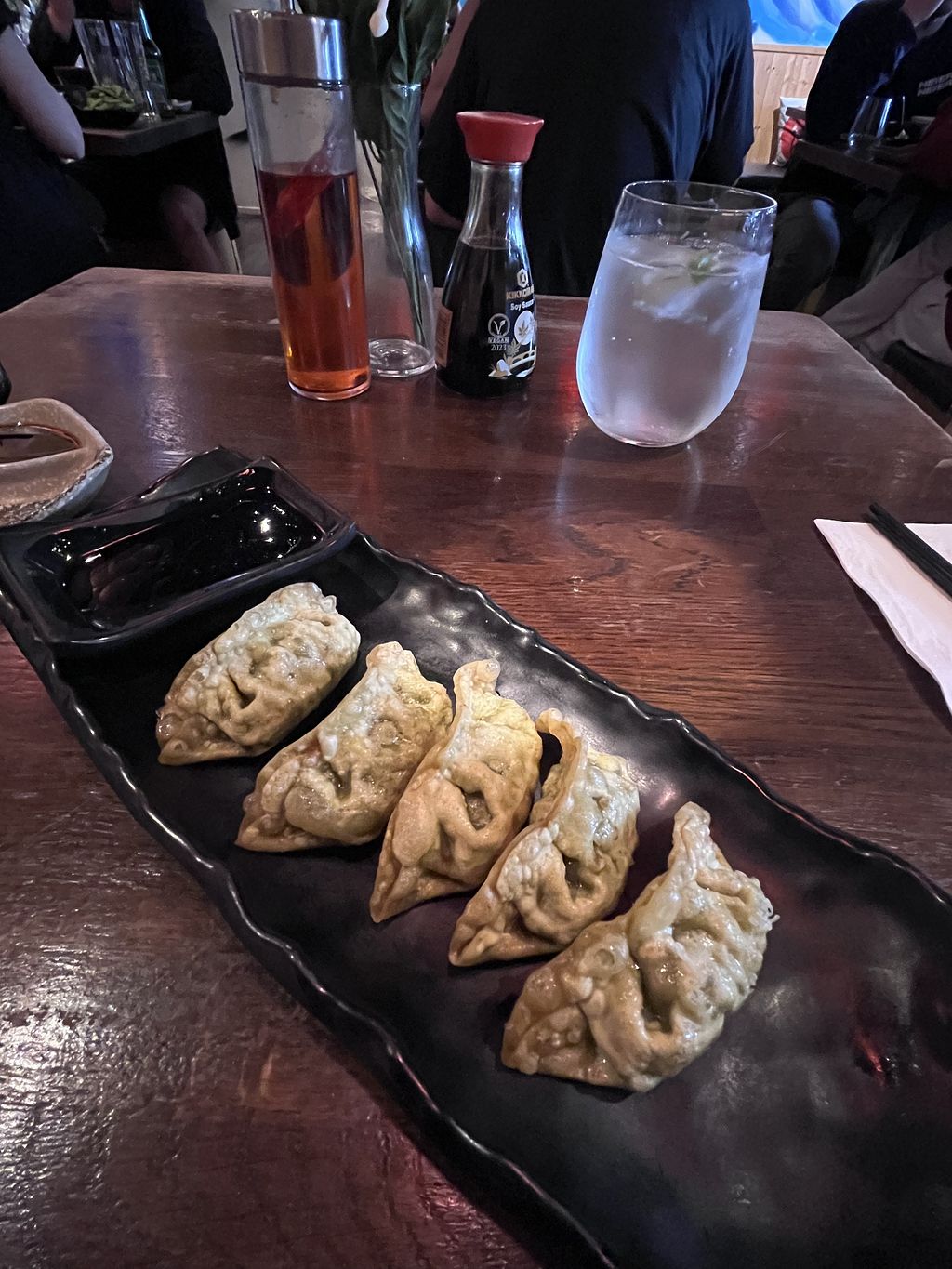 We came for an early Monday night dinner and the place was packed. Lots of vegan options. They made it clear that everything was fried in the same oil which I appreciated, so we knew to avoid the veg tempura and gyoza. It's a shame because the table next to us ordered the tempura and it looked amazing. Had the ramen - tasty but could have had a bit more depth of flavour. Rolls were great. Service was amazing and the interior is beautiful.