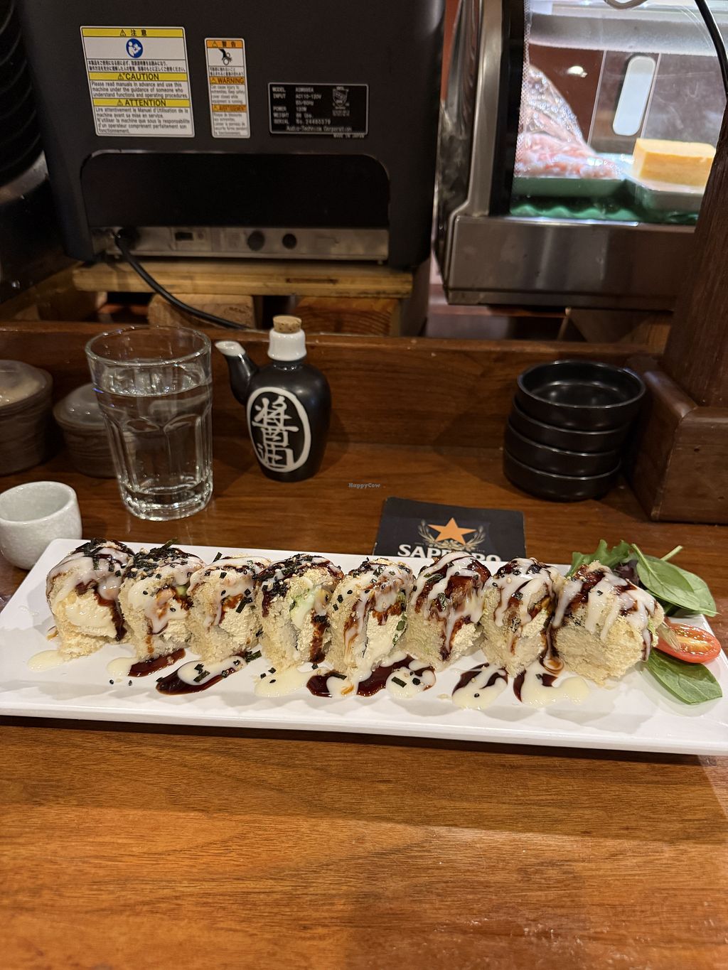 They have an outstanding, clear, and varied vegan menu. However the item I had last night was slimy and unappetizing: “Order First,Think Later.” I have had better items from here but I do think they’re a step below Samurai Sushi in terms of their creations.