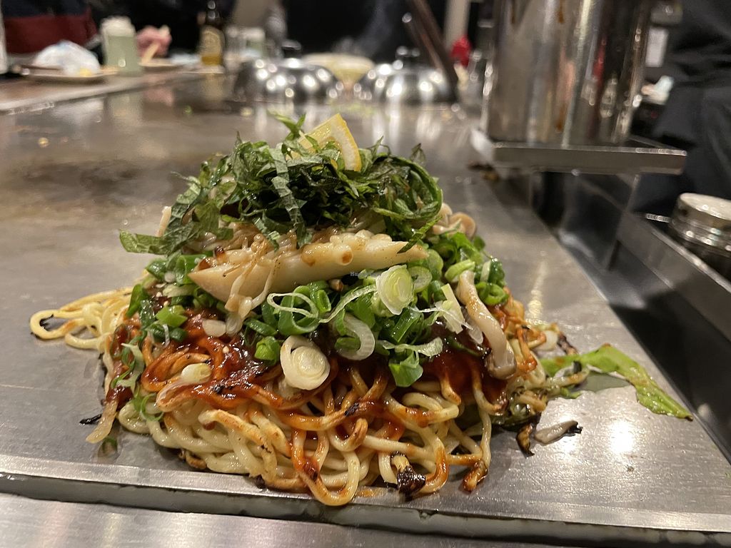 Enjoyed the vegan okonomiyaki! All in all it was a great experience, they use different utensils and area of the grill for the vegan ones.