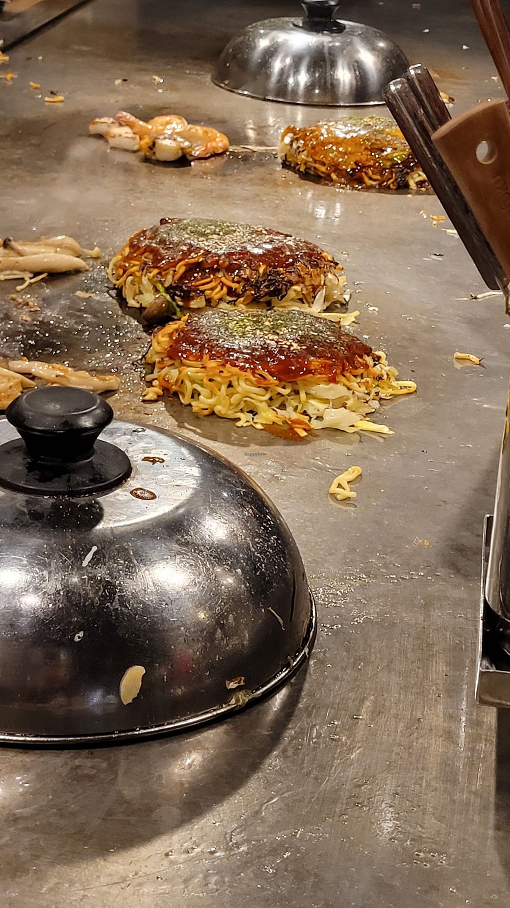 Vegan okonomiyaki cooking on a freshly cleaned cook top