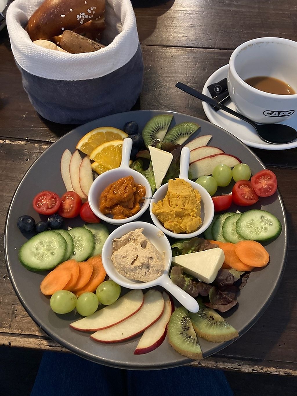 Serves meat, vegan options available. Bistro with clearly labeled vegan dishes. Choices include "go vegan" breakfast, porridge, beetroot falafel, and chocolate brownie. Open Mon-Tue 08:00-22:00, Thu 08:00-22:00, Fri 08:00-23:00, Sat 09:00-23:00, Sun 09:00-21:00. Closed Wed.