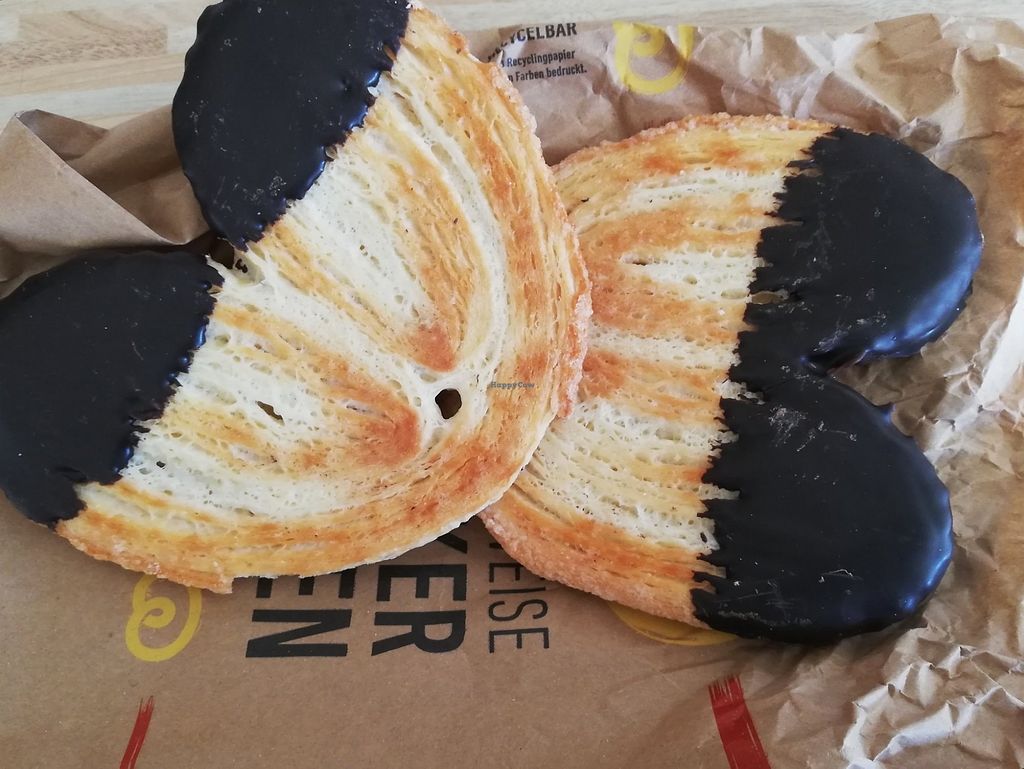 Serves meat, vegan options available. Counter service bakery outlets across Germany. Some are shops-only, some are bakehouses - see website for product list. Marks the vegan items which include various breads, rolls, and pastries like the franzbrötchen (cinnamon bun) and apple turnover. Has coffee, soups, as well as sandwiches including veggie/vegan ones. Reported closed October 2020.