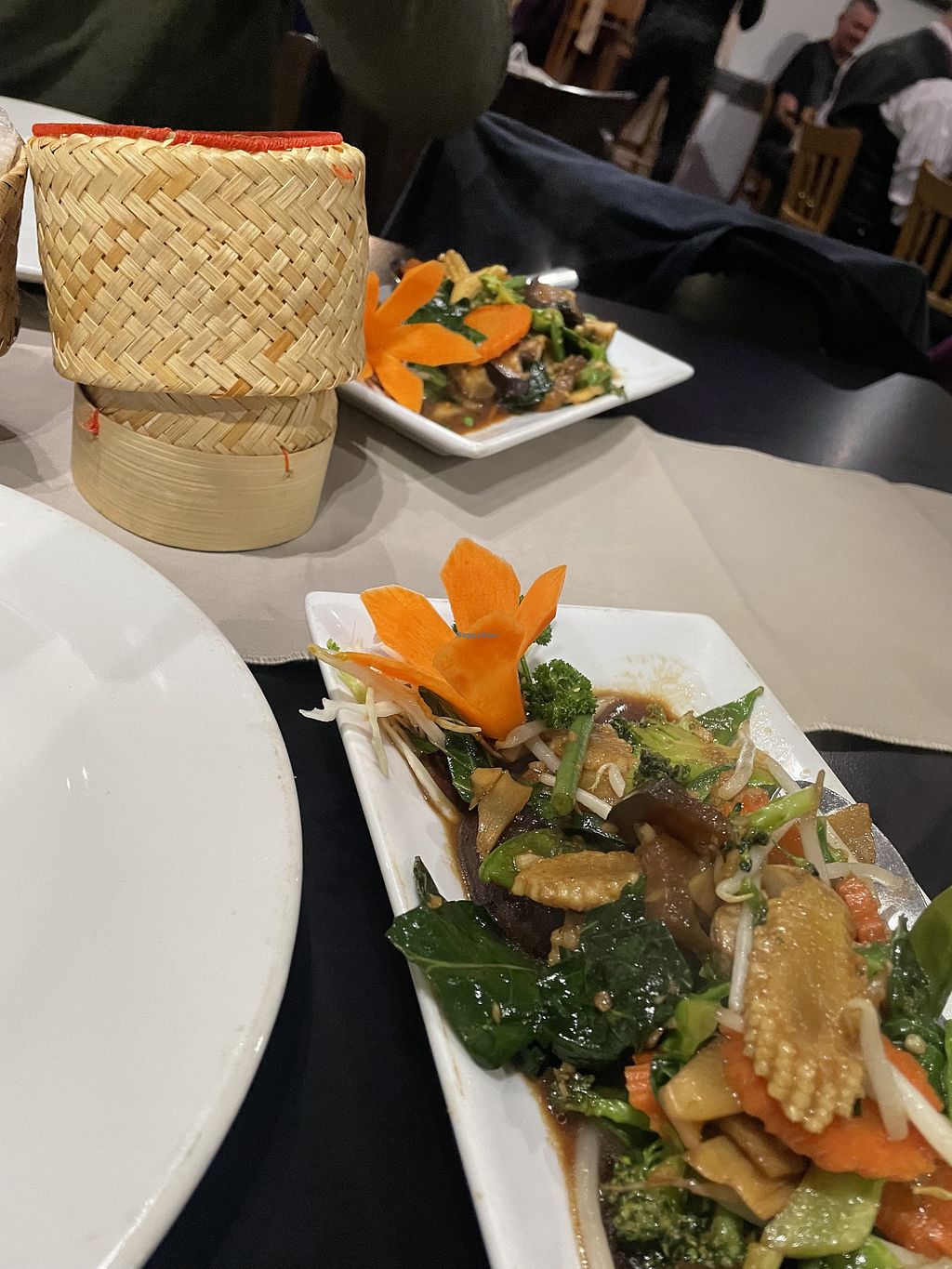 Lots of vegan options. Can’t remember exactly which stir fry we each got but both were tasty with plenty of fresh veg! Sticky rice was cooked perfectly. Quick friendly service. Definitely would come back.