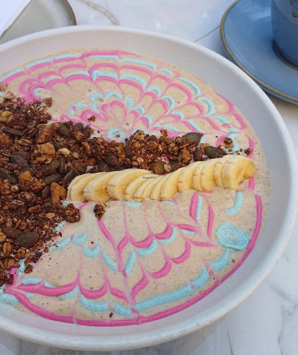 Serves fish, vegan options available. Health food café offering several vegan items, such as tofu scramble, chia cups, oats, salads, smoothie bowls, and more. Reported to serve fish December 2024. Open Mon-Sun 8:00am-5:00pm.