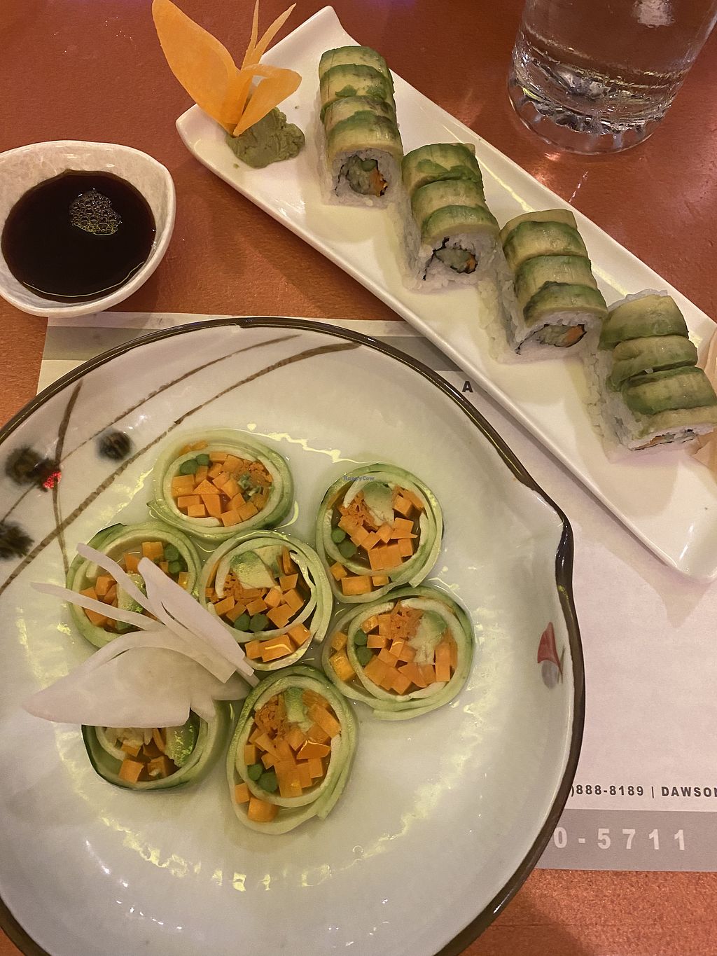 Serves meat, vegan options available. Has a vegan menu on the website listing appetizers, salads, entrees, and sushi rolls. Note that fried foods use a shared fryer, and tempura sauce is not vegetarian. The Asian vinaigrette is vegan, but the other sauces are mostly not - check with your server. NOTE: Reported October 2024 to have limited vegan options – please send updates to HappyCow. Open Mon-Fri 11:30am-10:00pm. Closed Sat -Sun.