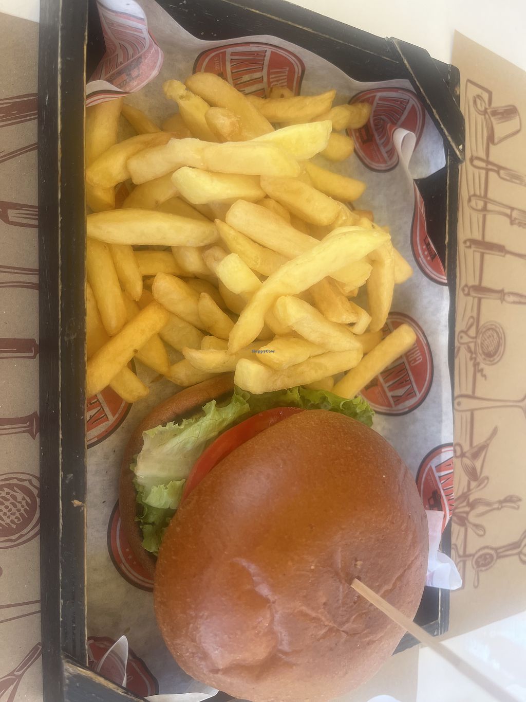 Good Gyros! They have falafel or vegetable burger. All gyros come with fries inside. They also came with vegan mayo which is super creamy!