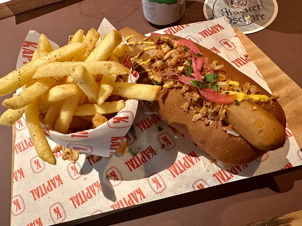 This modern beer hall, has all of its core beers as vegan. There is a reasonable selection of food, clearly labelled as vegan. I really enjoyed The Vegan Brat 🌭