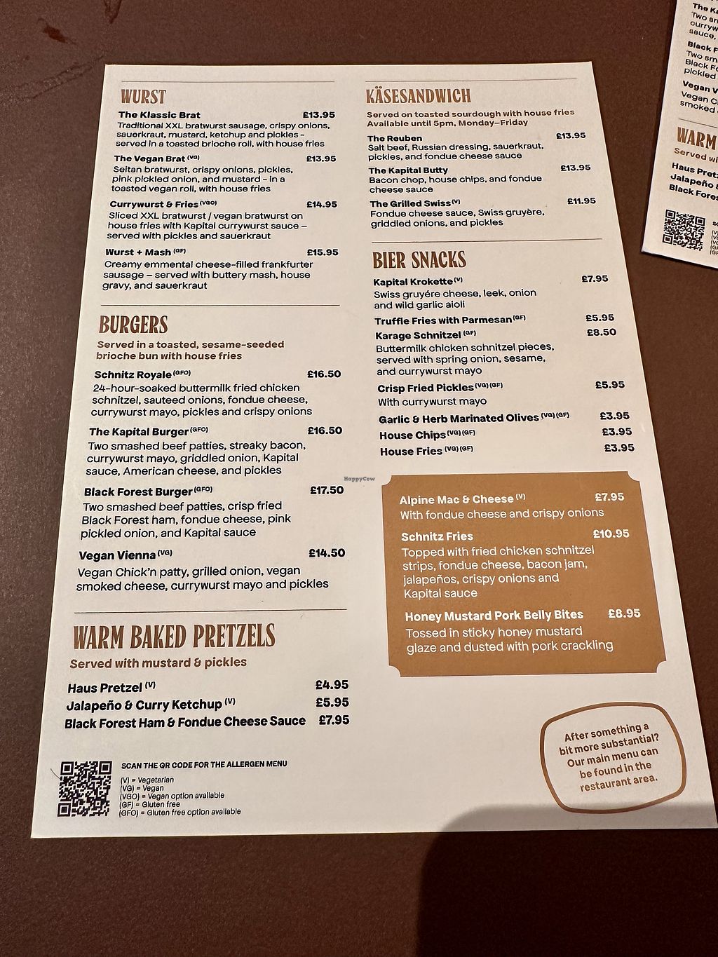 Serves meat, vegan options available. A modern beer hall and restaurant offering vegan dishes such as The Vegan Brat and the Vegan Vienna Burger. Open Mon-Thu 11:30-23:00, Fri-Sat 11:30-01:00, Sun 11:30-23:00.
