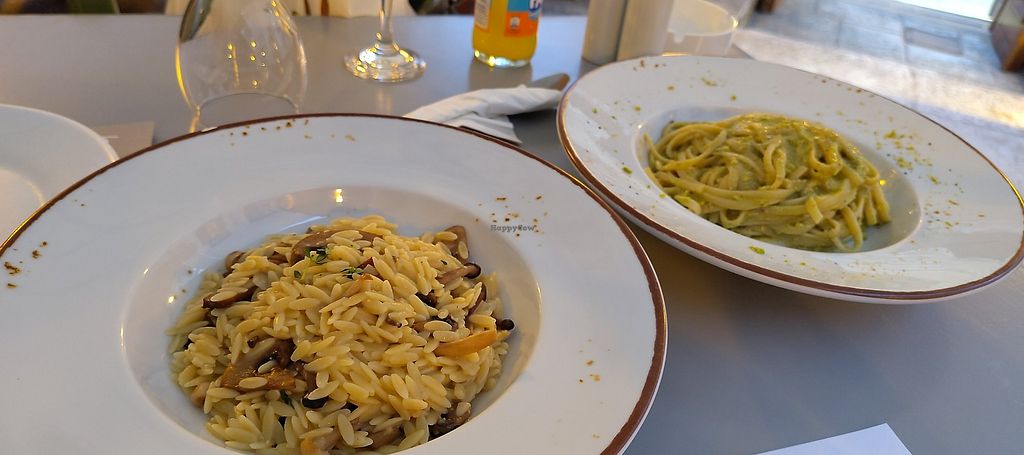 We got a mushroom risotto, pistachio pesto pasta, some vegan starters and the vegan dessert. All tasted really good and the staff was polite.