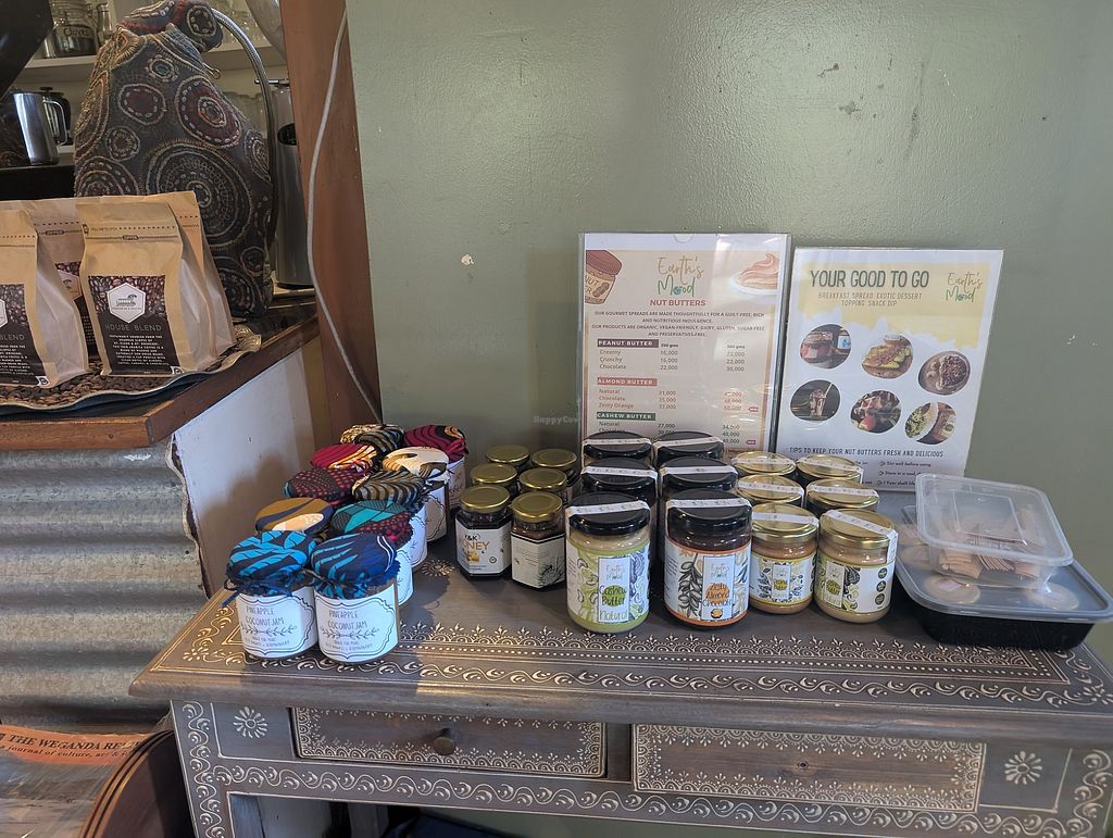 Serves meat, vegan options available. Café with some vegan and gluten-free options. Menu includes a vegan spinach & cashew lasagna, a Mediterranean bowl, a lentil curry, and a mezze platter. Also serving juices and coffee with plant milk. Open Tue-Sat 8:00am-6:00pm, Sun 8:00am-4:00pm. Closed Mon.