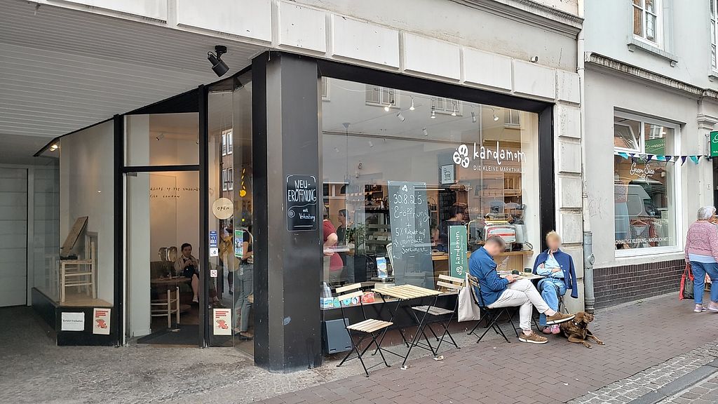 Packaging-free, zero-waste shop and cafe selling grocery items, fresh vegetables, and offering self-baked bread, baked goods, and beverages. Vegan items include oat milk powder, tofu, and vegan gummy bears. Open Wed 10:00-06:00, Thu-Sat 10:00-18:00, Sun 10:00-16:00. Closed Mon-Tue.