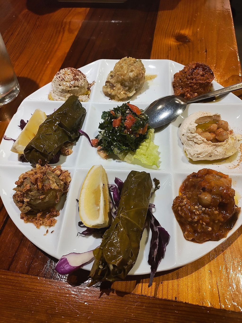 Read moreThe restaurant feels nice, a bit more upscale but not stuffy. Staff is friendly and we loved everything we ate. My vegan partner ordered stuffed peppers and the lemon lentil soup they were both flavorful. I ordered from the Taste of Beruit section: the Chef Rashid platter which had a sampling of different spreads and we got an extra grape leaf to replace the to labneh, it was excellent! We'll definitely go back!