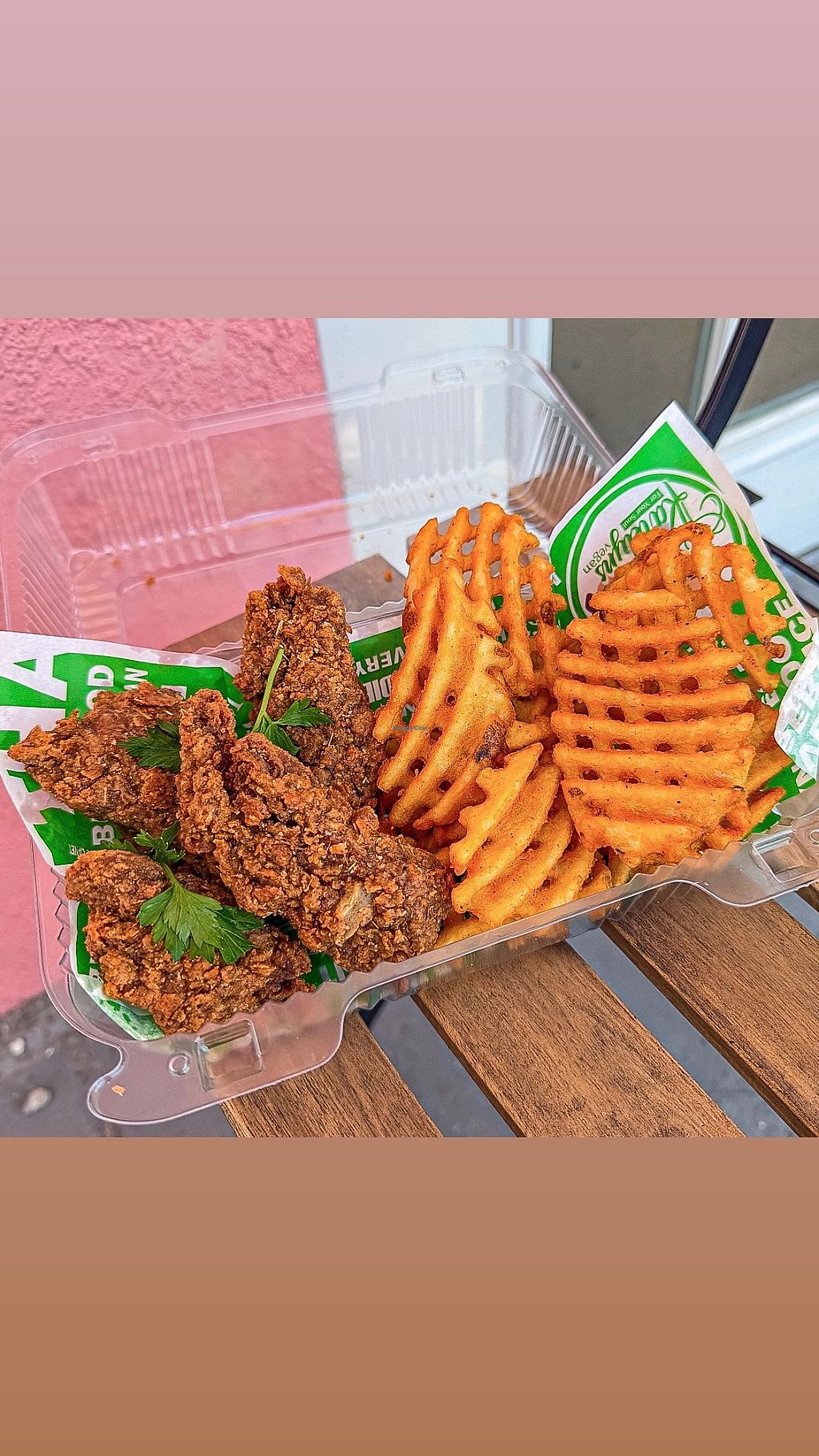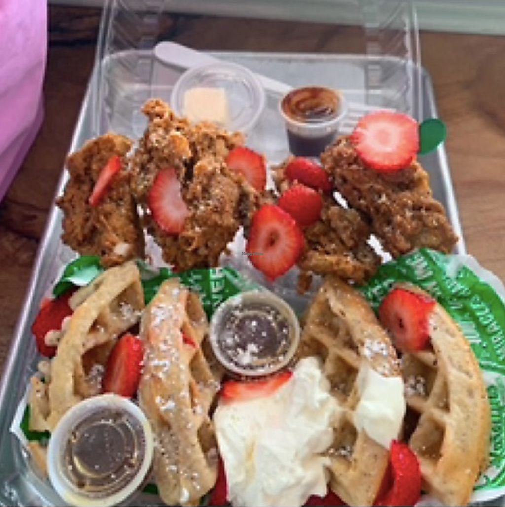 Chikn and waffles were great! Everything else not so much. Mac and cheese was oddly sweet, waffle fries were soggy and not very flavorful, kale salad was not very tasty either (not a fan of the stems left inside & kale not massaged) everything is a bit overpriced as well. I spent a total of $87.77 for whats pictured. (Mac n cheese, cornbread, & fries are shown at half portion) I do not believe this was worth the price. However I would get the chikn and waffles again!