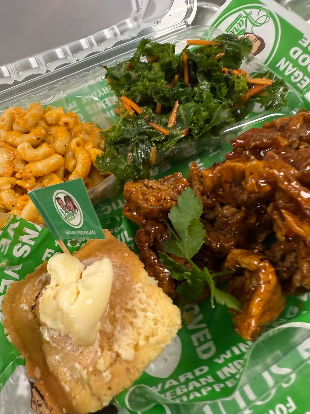 Originally when I ordered from this vendor at a vegan event, the oyster mushrooms tasted like burned grease. I refused to order from them since until last night. They were at the Vegan Street Party and I ordered the Karelyn dinner which included fried oyster mushrooms, Mac and cheese, cornbread and kale salad.