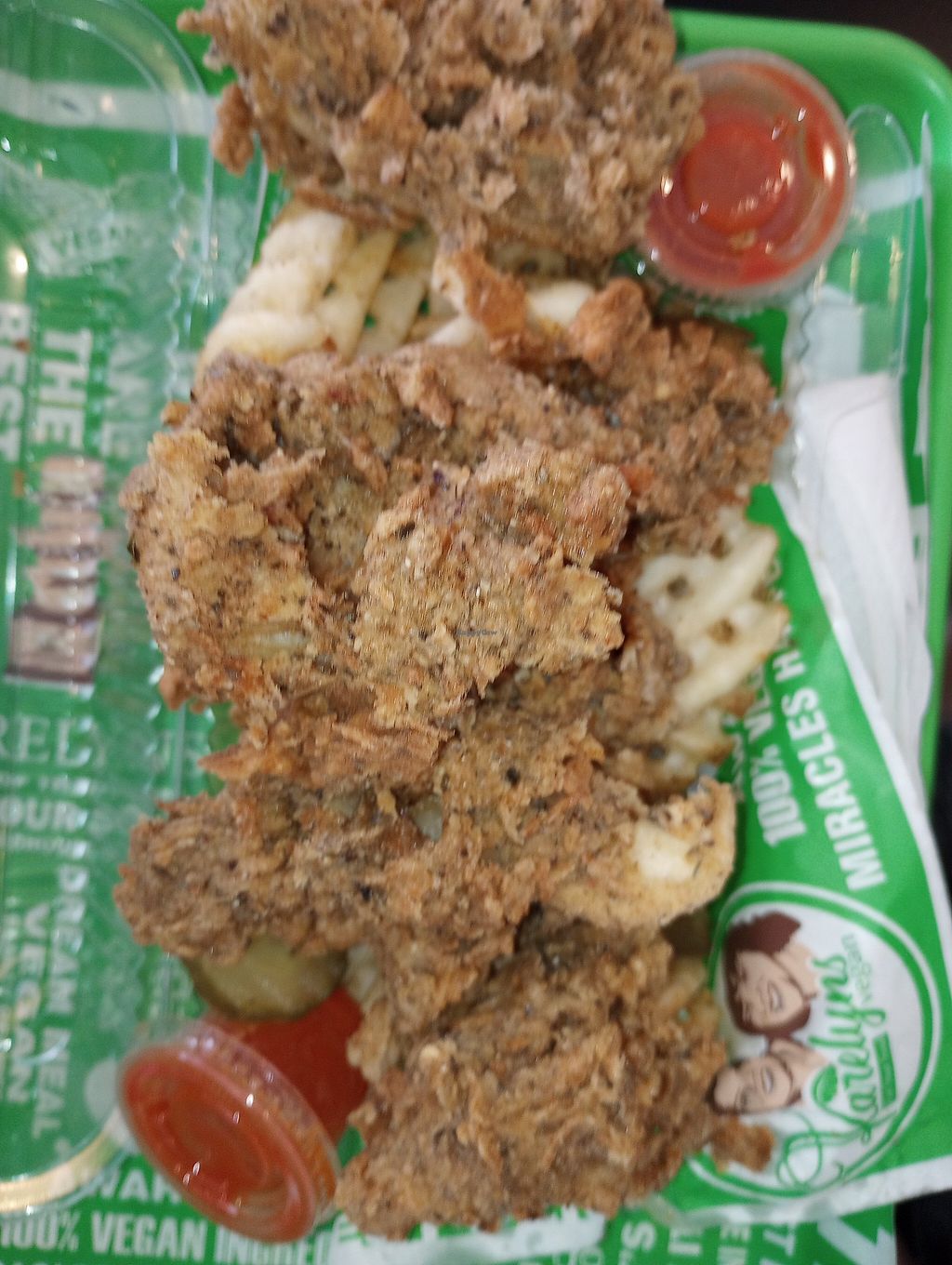 Read morethe food is delicious. i've never eaten fried food that is so wholesome and doesn't leave me feeling heavy before, but karelyn's does it. unfortunately for me, a large portion of the menu is unavailable to me due to a nut allergy; however, i've had my fair share of oyster mushroom wings and bbq sandwiches.