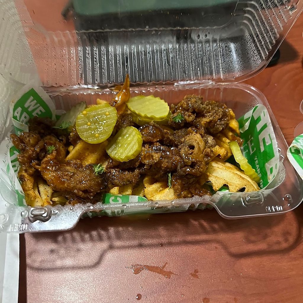 My first time trying them was at a vegfest. I made sure I got there early enough so wouldn't be in long lines and glad I didn't because it's only 2 of them. I got the philly cheese steak, fries and banana pudding and it came to 31.00. 10.00 each I guess, the philly and the banana pudding was delicious, the fries were just ok. I haven't had authentic tasting banana pudding since going vegan so was totally worth it. I'd try them again.