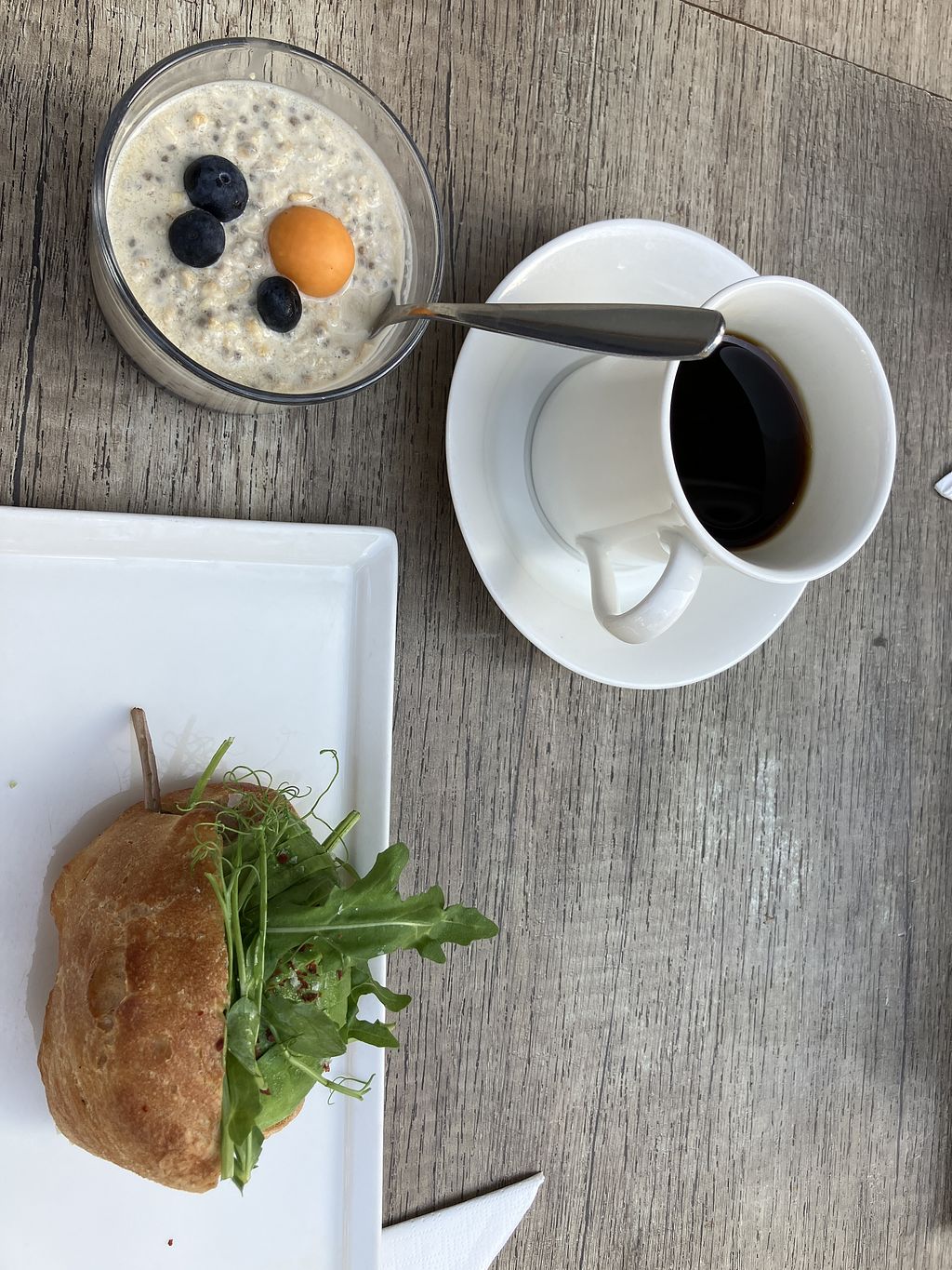 vegan apple pie with seeds on top and vegan oat milk chai latte