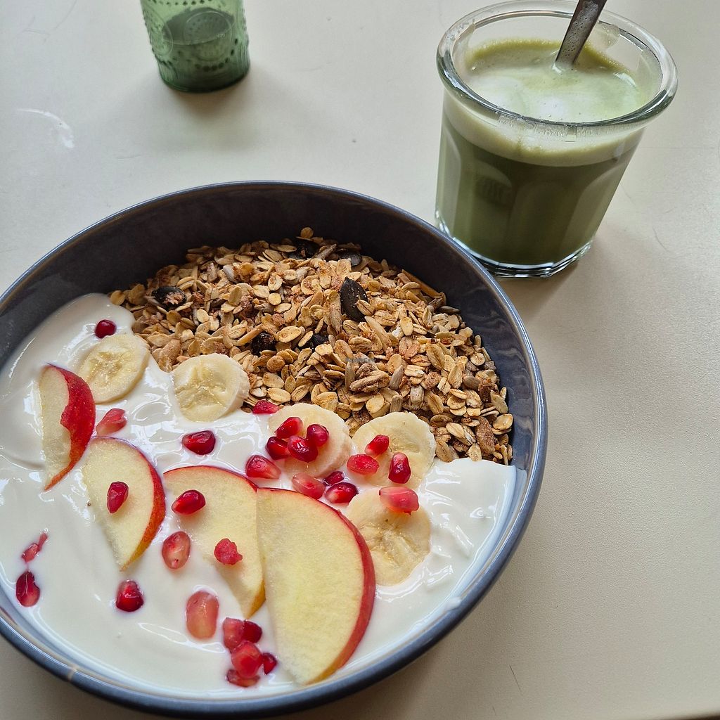 Extra: home made granola with soy yoghurt an fresh fruits (5,90€)