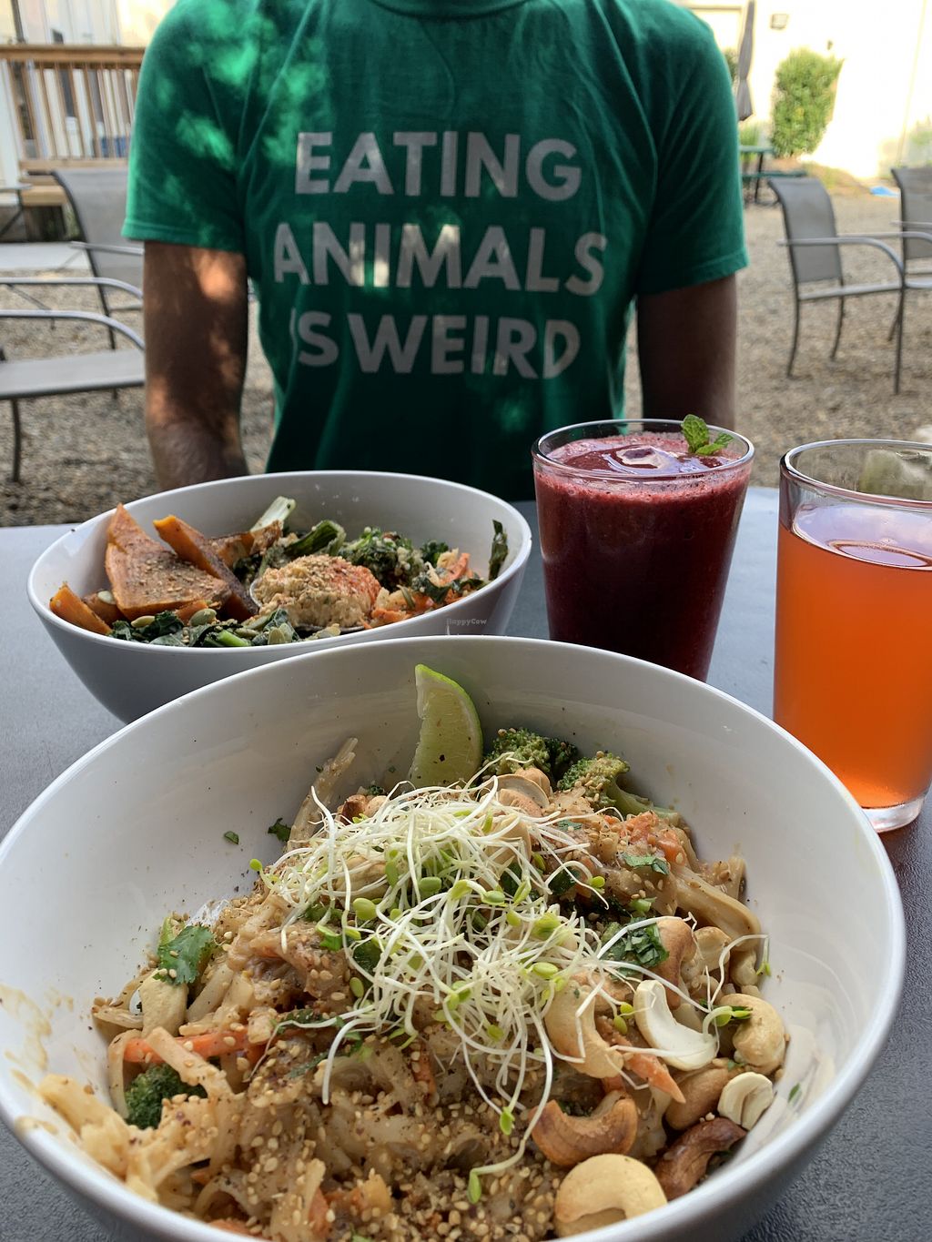 We got the peanut noodle bowl and superfood bowl. Both were delicious! I love that the whole menu can be vegan. I don’t understand why they would feel the need to add eggs and honey to their menu. Without those two items they could be completely cruelty free.