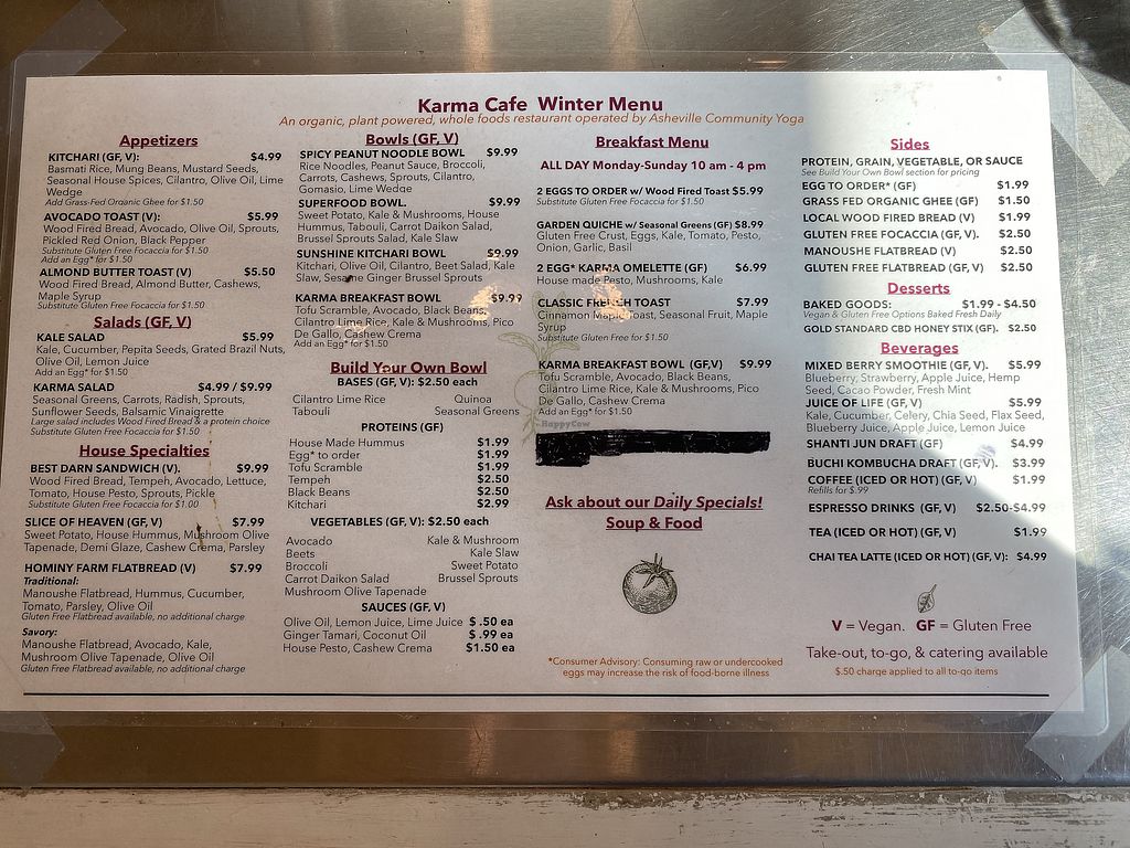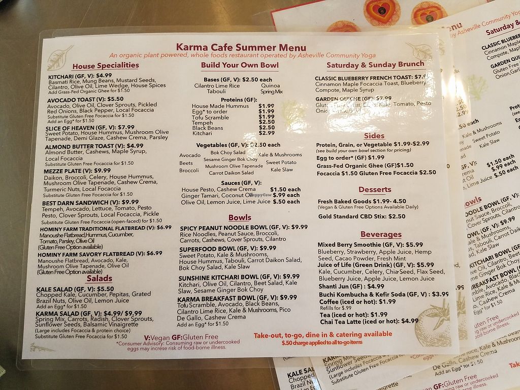 Karma Café is the latest opening from Asheville Community Yoga and offers healthy food such as sandwiches, bowls, soups, snacks and salads. Confirmed closed, Jul 2020.
