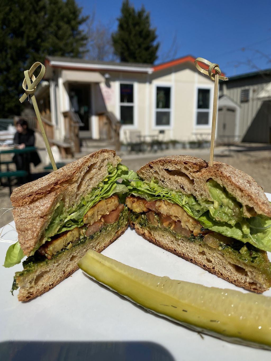 Great atmosphere here. Vegans will be happy and non-vegans will probably like it too cause of the multiple options, nice indoor seating and great outdoor yard with a peaceful pond and picnic tables, dog friendly