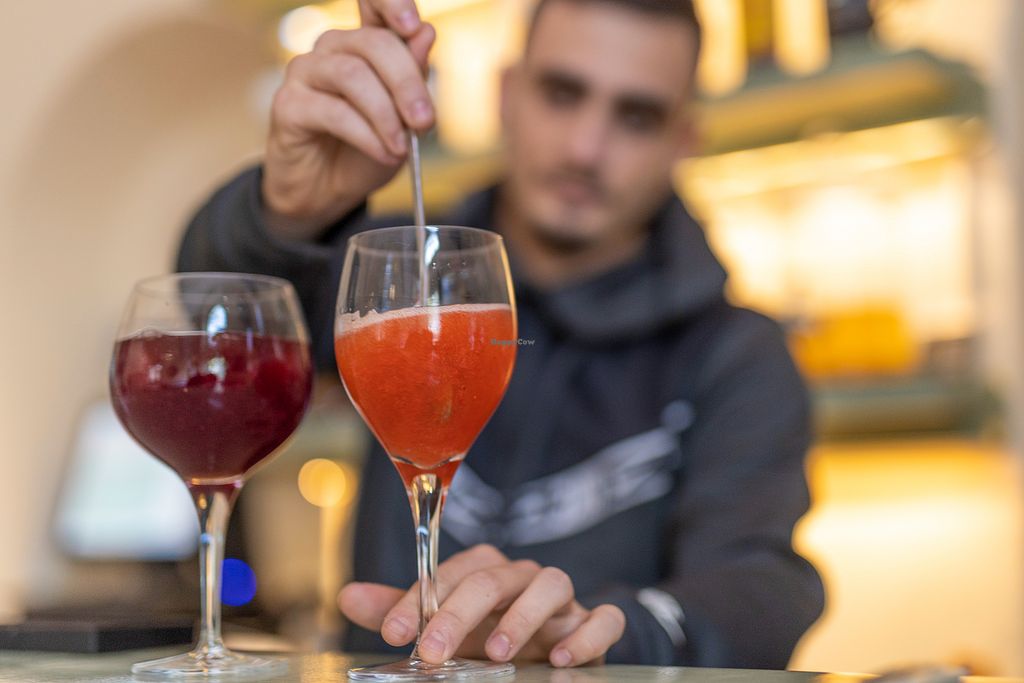 Gemista (stuffed tomato and stuffed pepper, served with some thickly c…