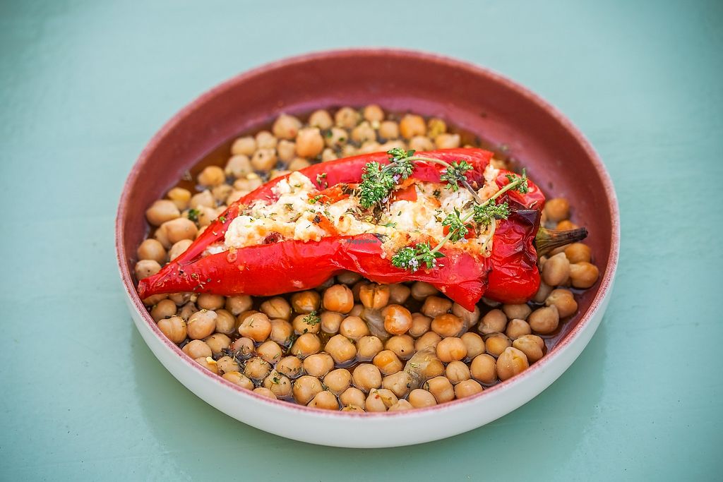 Fava with caramelised onions homemade Greek sundried tomato bread