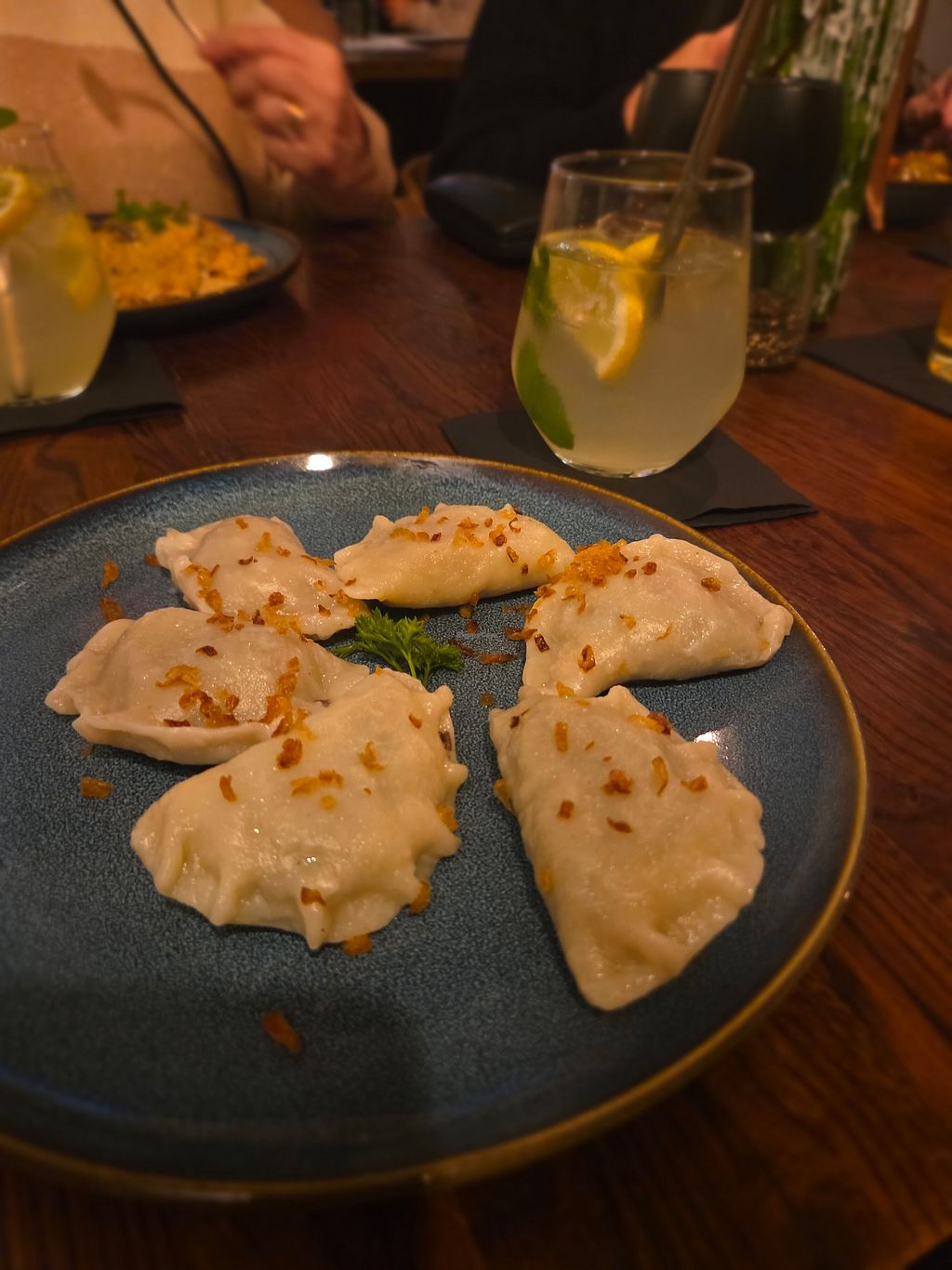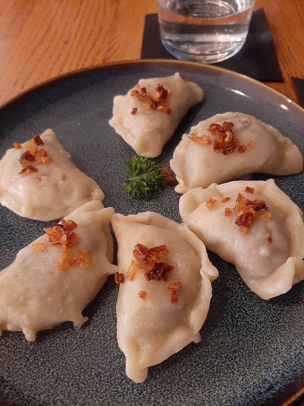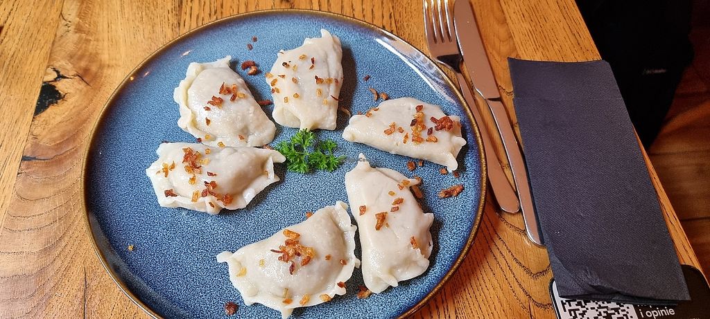 Read moreThe dish comes with 6 pierogi (approx. 200g) which, despite the humble appearance, pack a total flavour BOMB. The dough is soft and slightly chewy, and the mushroom cabbage filling is salty, umami and very satisfying. As the earlier reviews suggest, the portion is on the smaller side and definitely leaves room for dessert, which you unfortunately won't be able to get from the restaurant (at least without modifications?). If your intention is, however, just trying the pierogi, I would still recommend choosing this place.