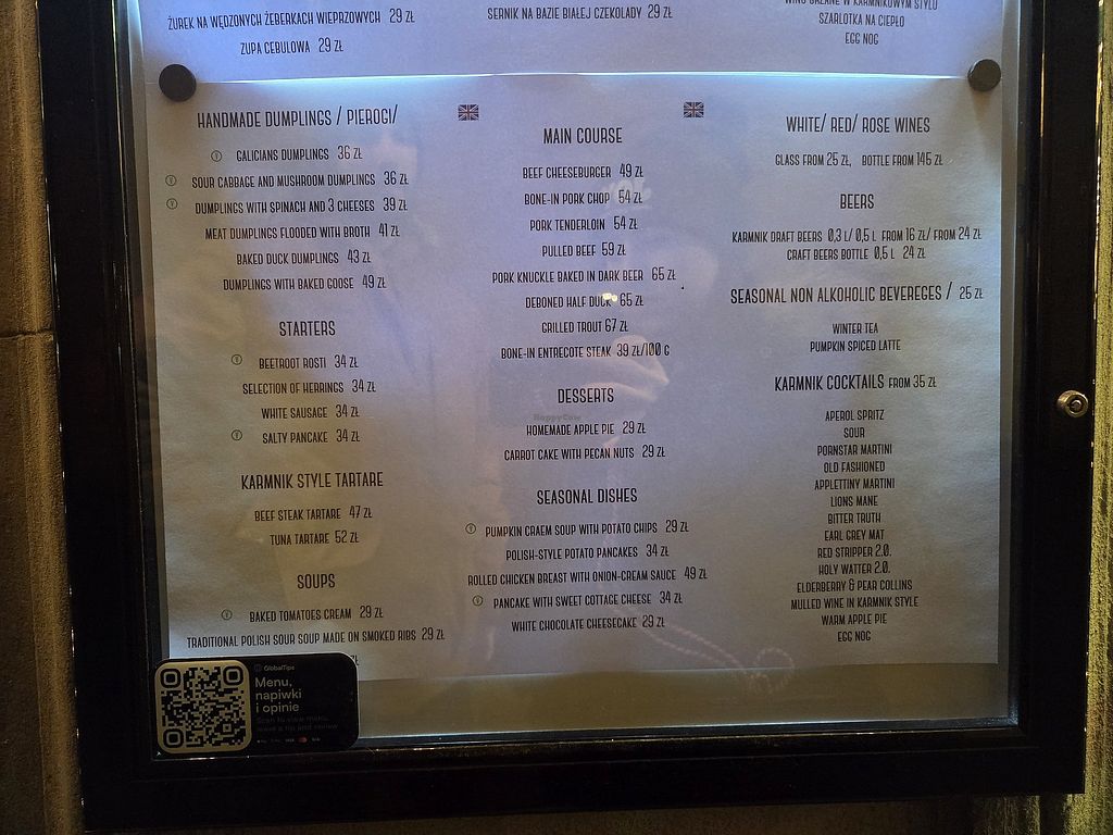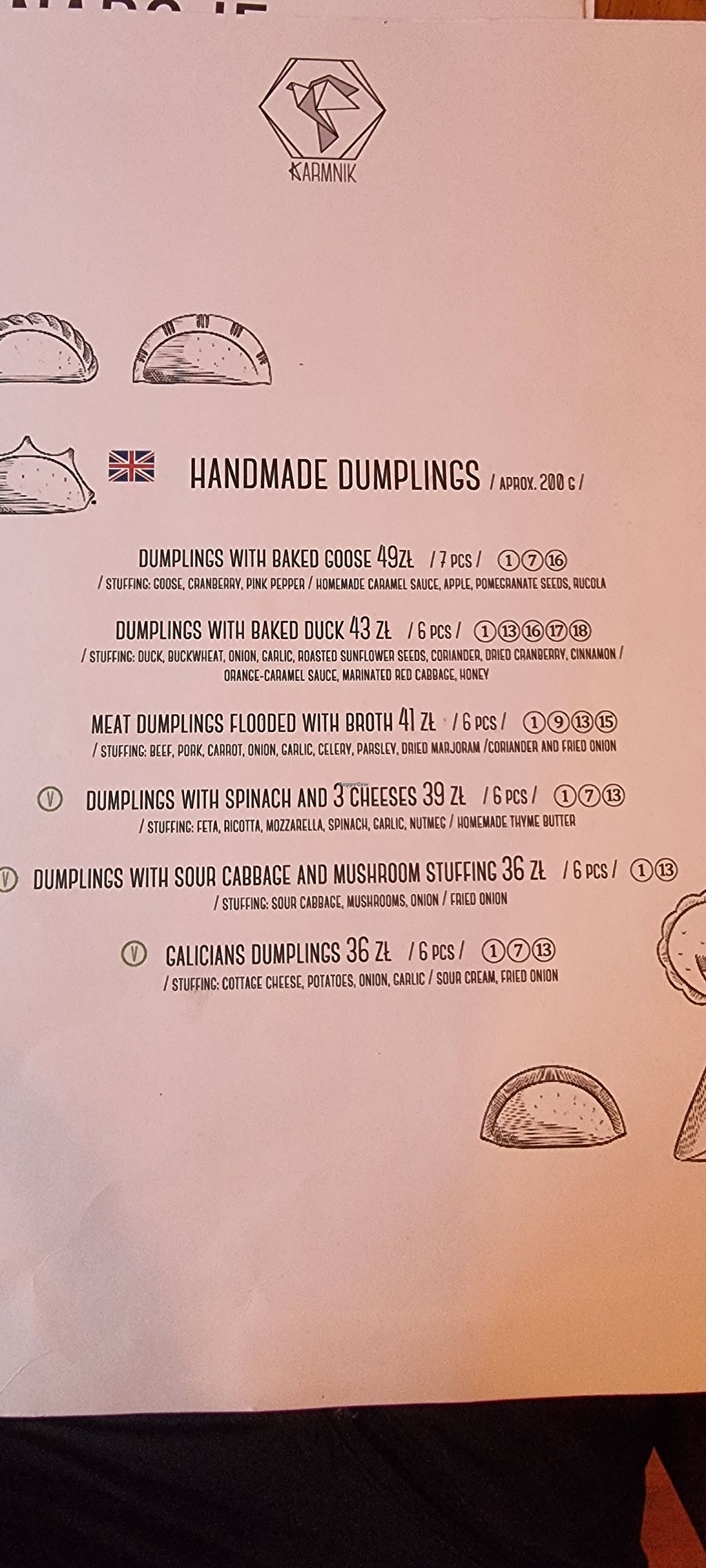 Wanted to try a traditional Polish meal and found this restaurant. There is one vegan option which is the mushroom and cabbage dumplings. The allergens are clearly labelled on the menu, so I didnt have to check they're definitely vegan! Also has English on the menus.