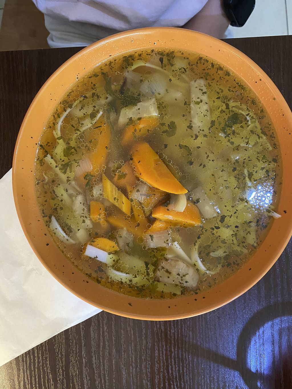 Porcje szczere od serca, mega smaczne i domowe. Polecam placka po zbójnicku, którego wzięliśmy na pół i Pani nawet dała nam dwa osobne talerzyki. Rosołek też pyszny. Jedyny mankament to ostry zapach oleju,który został mi na ciuchach i włosach. Może to przez brak wentylacji w starej kamienicy,nie wiem. W każdym bądź razie na smak jedzenia nie miało to wpływu. 💯 Polecam