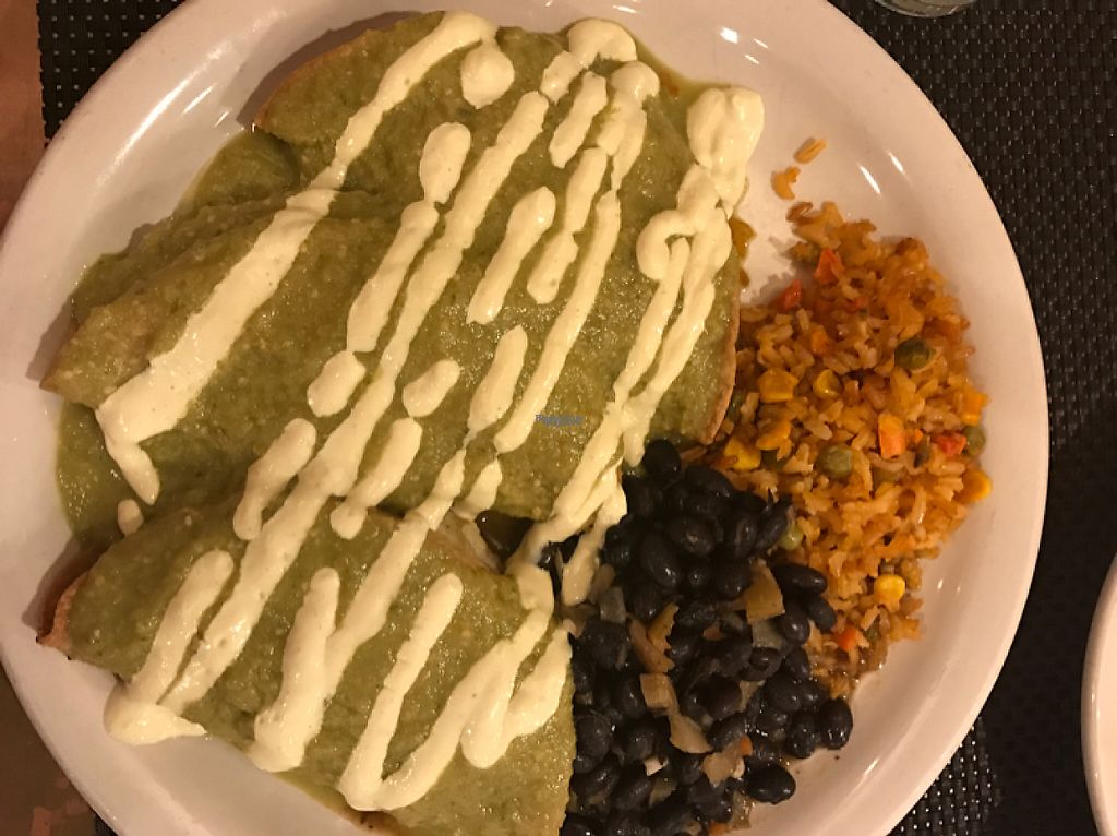 green enchiladas: Corn tortillas stuffed with garlic mashed potatoes, …