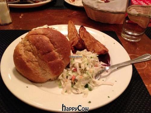 sloppy jo: slow cooked soy protein on a toasted whole wheat bun with s…