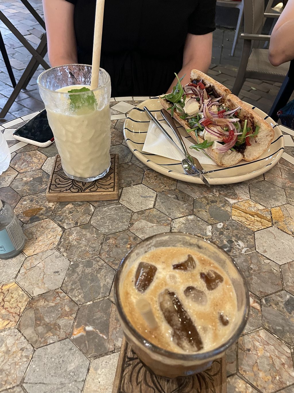 The food is very good (had a cream cheese bagel with avocado and my bf had hummus) but the place is even better. It’s a small courtyard with all sorts of shops around and in the middle there’s a pond you can sit around. Staff is very helpful too.