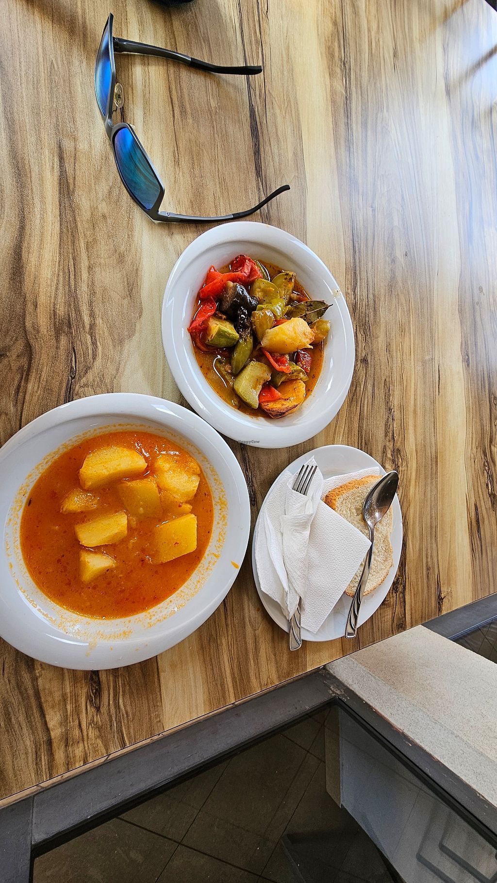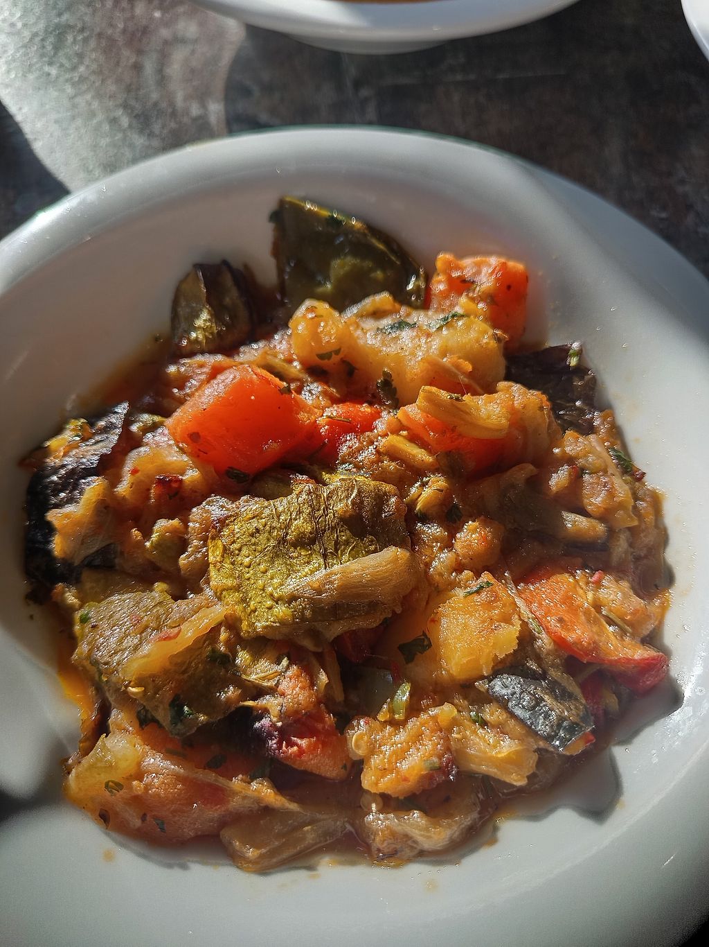 Asked a mix of stewed veggies and okra with a spoon of veggie soup on …