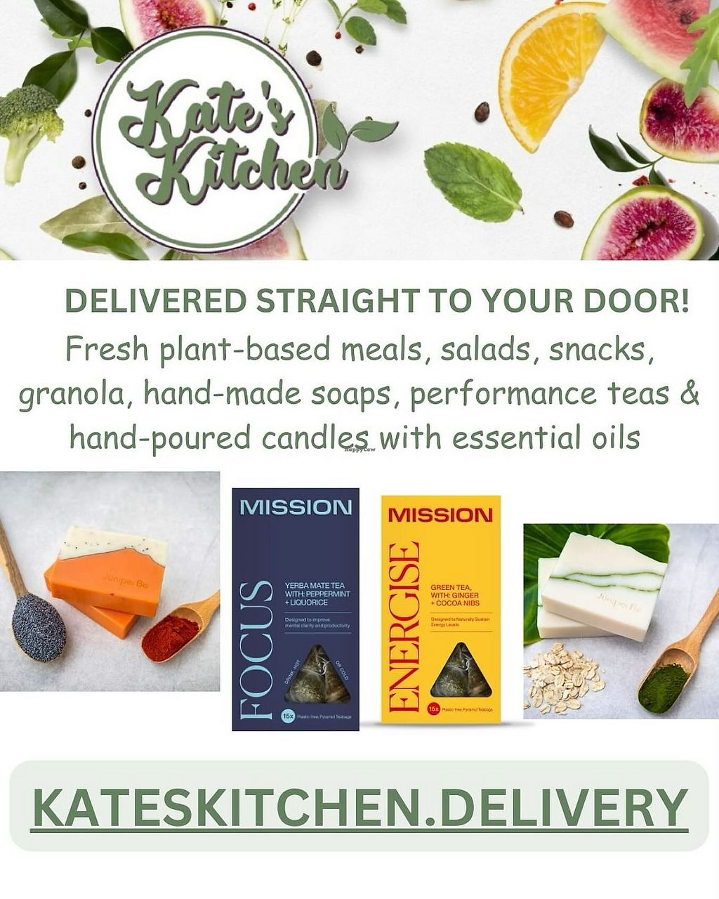Vegan/plant-based dishes, freshly made, and delivered within 5 miles. Menu can include coconut Thai curry, nutty creamy korma, ratatouille risotto, salads, desserts, and treats.
