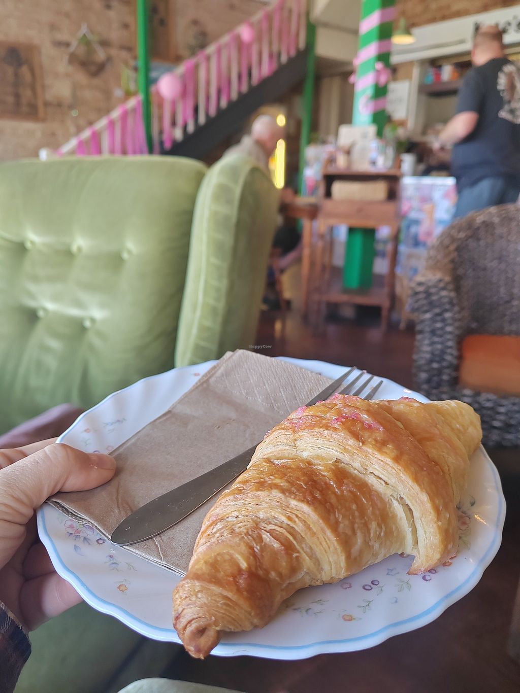 Cute cafe/restaurant with a beautiful view. They have a vegan raspberry croissant in the menu and some mushroom dish. Come here early in the morning because the croissaints sell out fast.