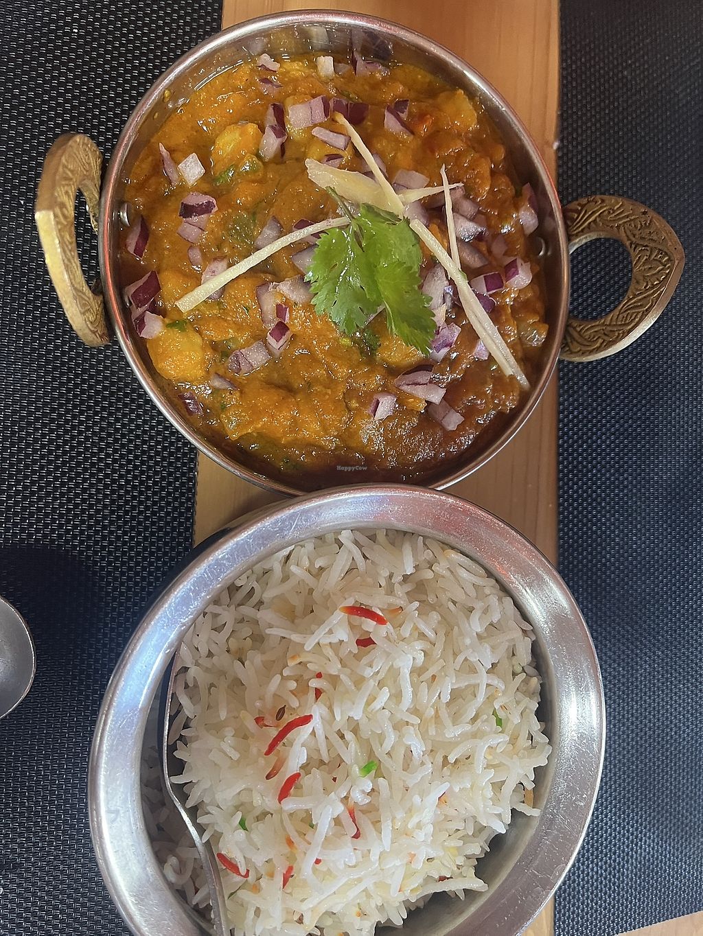 Serves meat, vegan options available. Indian/Nepalese restaurant offering a few items that are or can be made vegan and are indicated as such. Dishes include pappadom, lentil soup, salad, dal tadka, vegetable curry, aloo gobi, bhaji, mushroom matar, sag aloo and more. Open Tue-Sun 12:30-16:30, Tue-Sat 19:00-23:30, Sun 19:00-22:30.