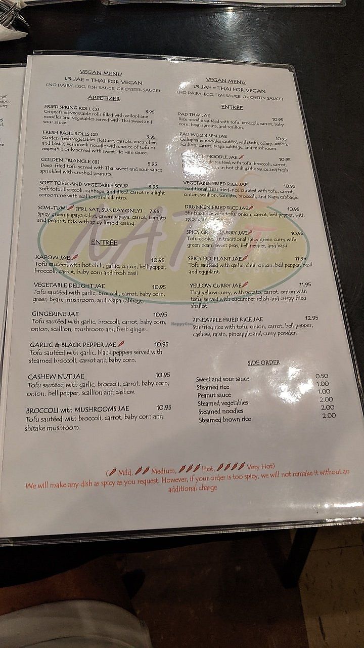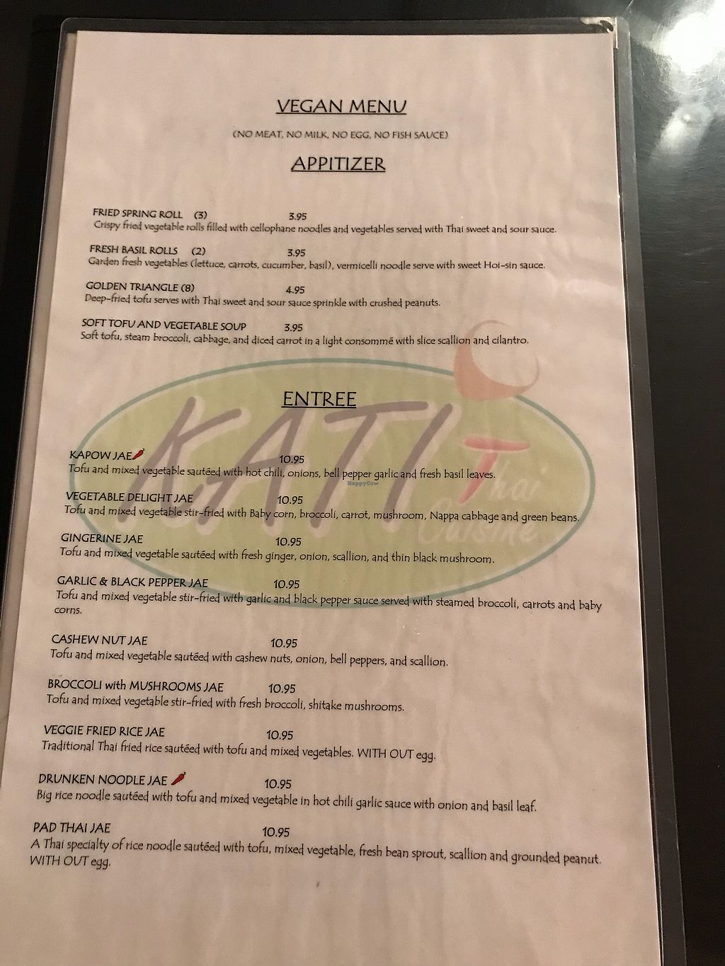 My husband and I had a wonderful meal here. They have a dedicated vegan menu. I had Pad Thai Jar and the spring rolls. Both were very good. Will definitely be back to try some other dishes!